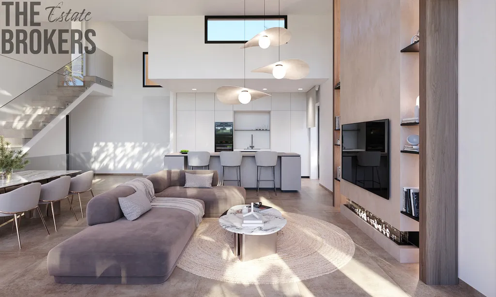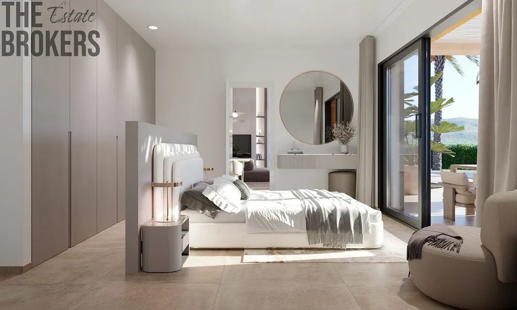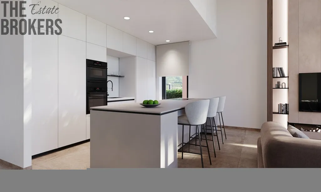 Přízemí: Zahrnuje obývací prostor v otevřeném plánu, který je spojen s jídelní částí a moderní kuchyní. Dále prostornou dvoulůžkovou ložnici s koupelnou en-suite a soukromou terasu. Velké posuvné dveře propojují vnitřní prostor s rozlehlou terasou a upravenou zahradou.