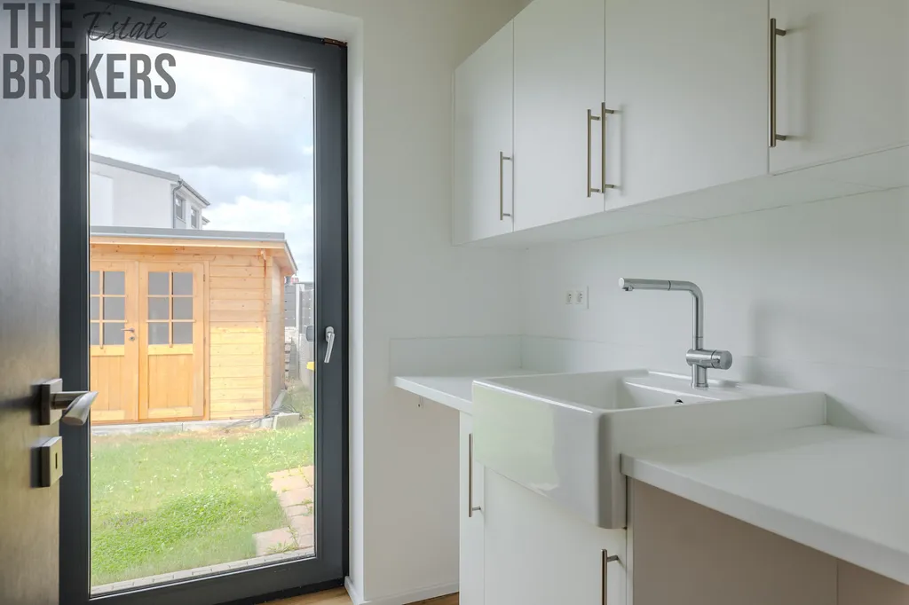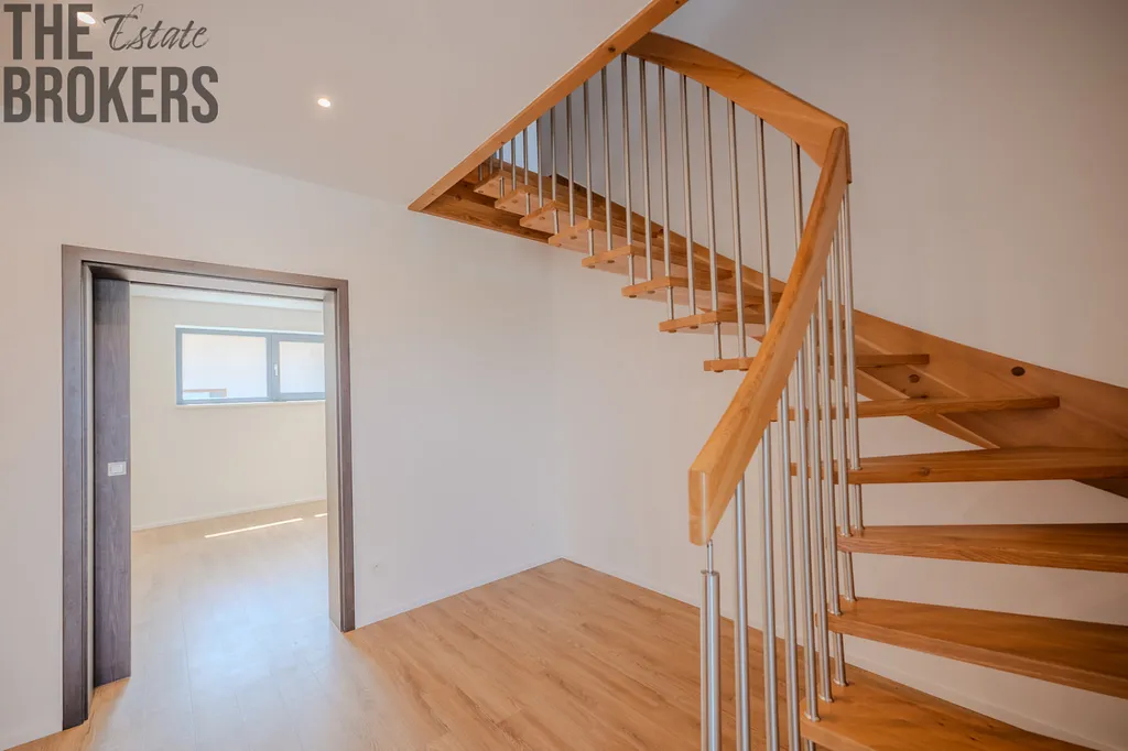 Přízemí: Vstupní hala se samostatnou toaletou a schodištěm do patra. Prostorný obývací pokoj s kuchyňským koutem a přímým vstupem na terasu a zahradu. Dále je zde praktická technická místnost.