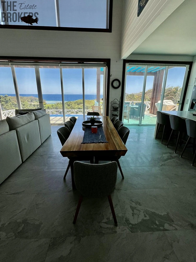 Tento nádherný dům zasazený do malebné krajiny s úchvatným výhledem na oceán spojuje luxus, pohodlí a moderní design. Tato nemovitost je ideální pro relaxaci i zábavu a nabízí bezproblémové bydlení uvnitř i venku, což z ní dělá perfektní útočiště pro rodiny nebo kohokoli, kdo si chce užít klid života na pobřeží. Tato rezidence se třemi prostornými ložnicemi a 3,5 koupelnami snadno ubytuje rodiny i hosty. Rozlehlá terasa je jako stvořená pro zábavu, nabízí stylový venkovní jídelní kout zastíněný elegantními pergolami a doplněný šumivým bazénem, který je ideální pro opalování nebo osvěžující koupání. Exteriér domu se může pochlubit moderní estetikou s elegantními liniemi, velkými okny a prostornou terasou ta umocňuje úžasný výhled na okolní krajinu a oceán, to vše obklopené bujnou zelení, která poskytuje soukromí a klidnou atmosféru. Tato nemovitost se nachází v exkluzivní malé komunitě s přístupem do doku a nabízí jedinečnou kombinaci ústraní a pohodlí.