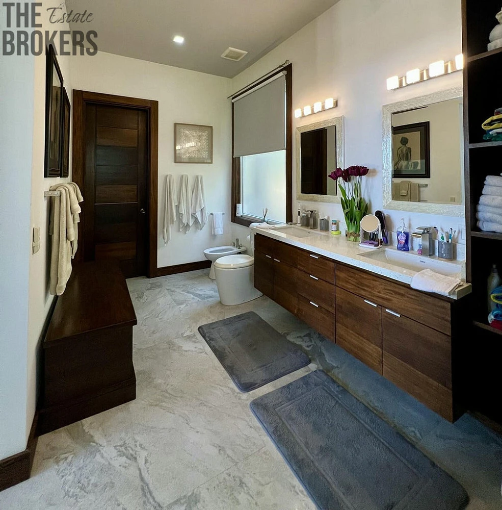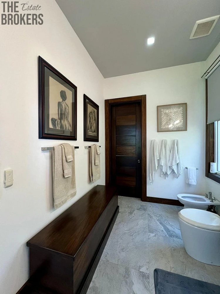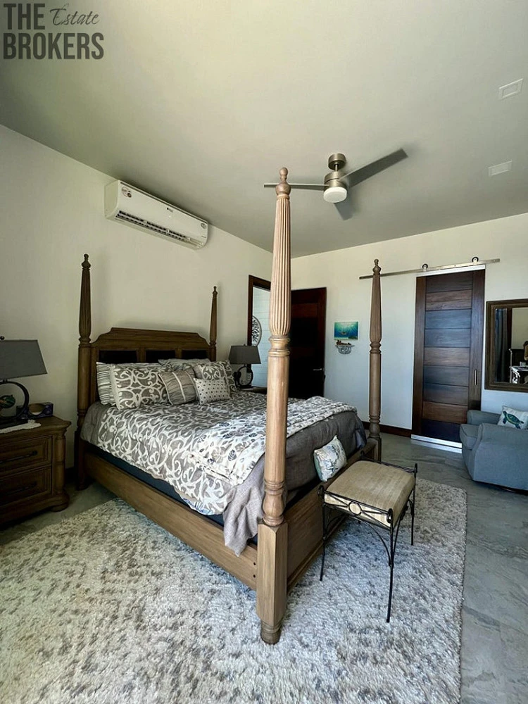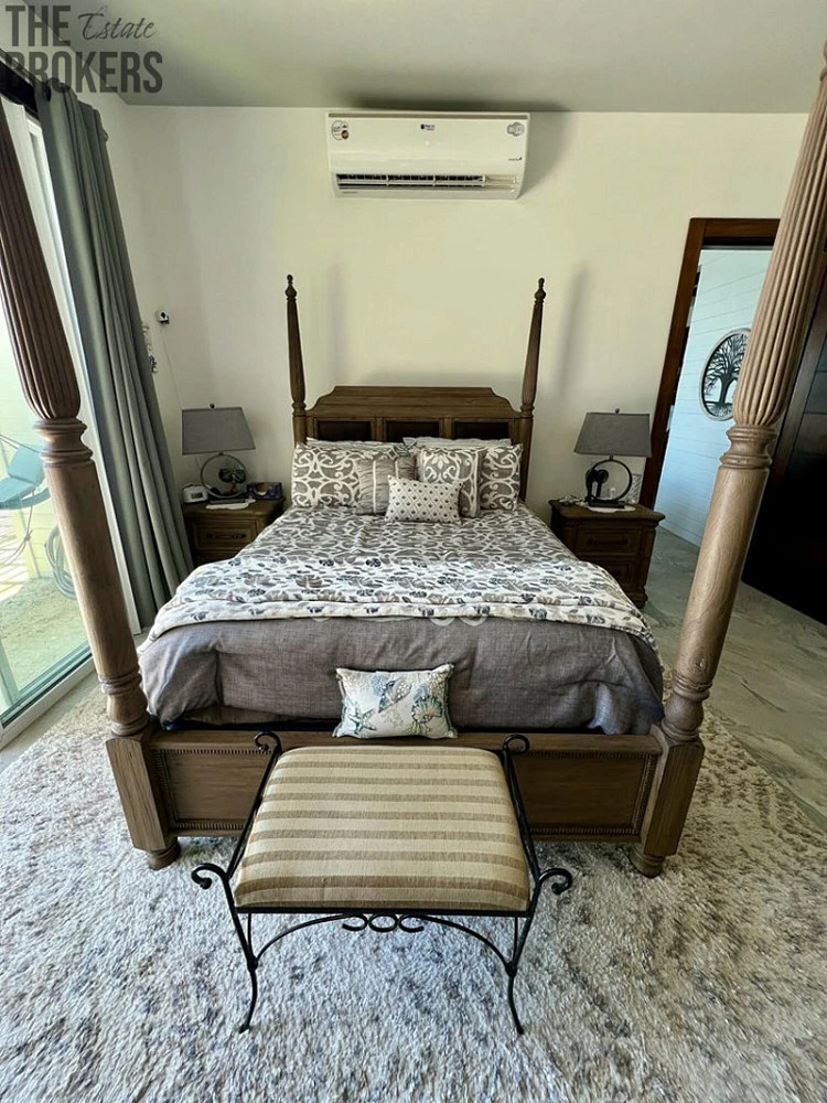 Luxusní hlavní ložnice je vybavena postelí s nebesy, vlastní koupelnou a velkými okny s úžasným výhledem, navržená pro relaxaci se stylovým nábytkem a dostatkem úložného prostoru. Další pokoje pro hosty jsou promyšleně navrženy s útulným dekorem a poskytují pohodlí a soukromí pro rodinu a hosty, umocněné vysokými stropy a dostatkem přirozeného světla.