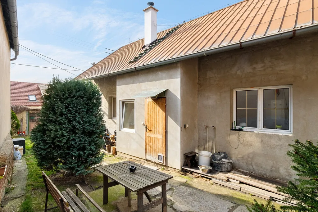 Uzavřený dvůr poskytuje dostatek soukromí a zároveň nenáročnou údržbu. Právě kombinace soukromí, dvou přístupů a dobré dostupnosti dělá z této nemovitosti velmi zajímavou nabídku.