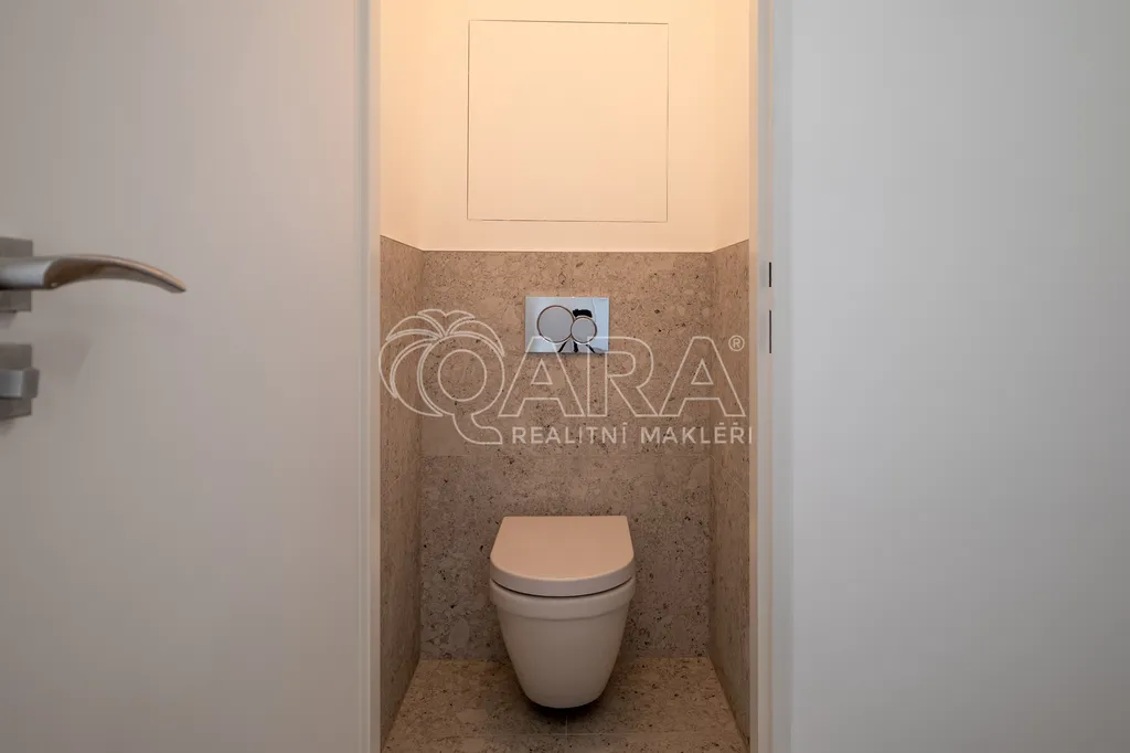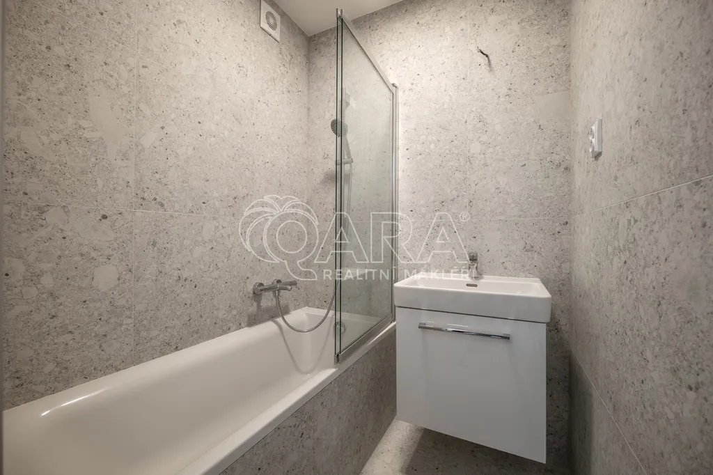 Celý byt prošel kompletní rekonstrukcí ve světlých neutrálních tónech, které podtrhují jeho vzdušnost a moderní charakter. Koupelna je s vanou a sprchovou zástěnou, toaleta je oddělena.