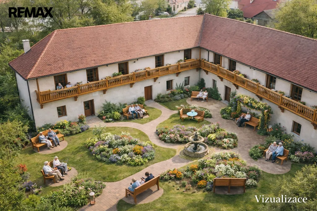 Uzavřený dvůr poskytuje maximální soukromí, klid a bezpečí – ideální pro kombinaci bydlení a podnikání.