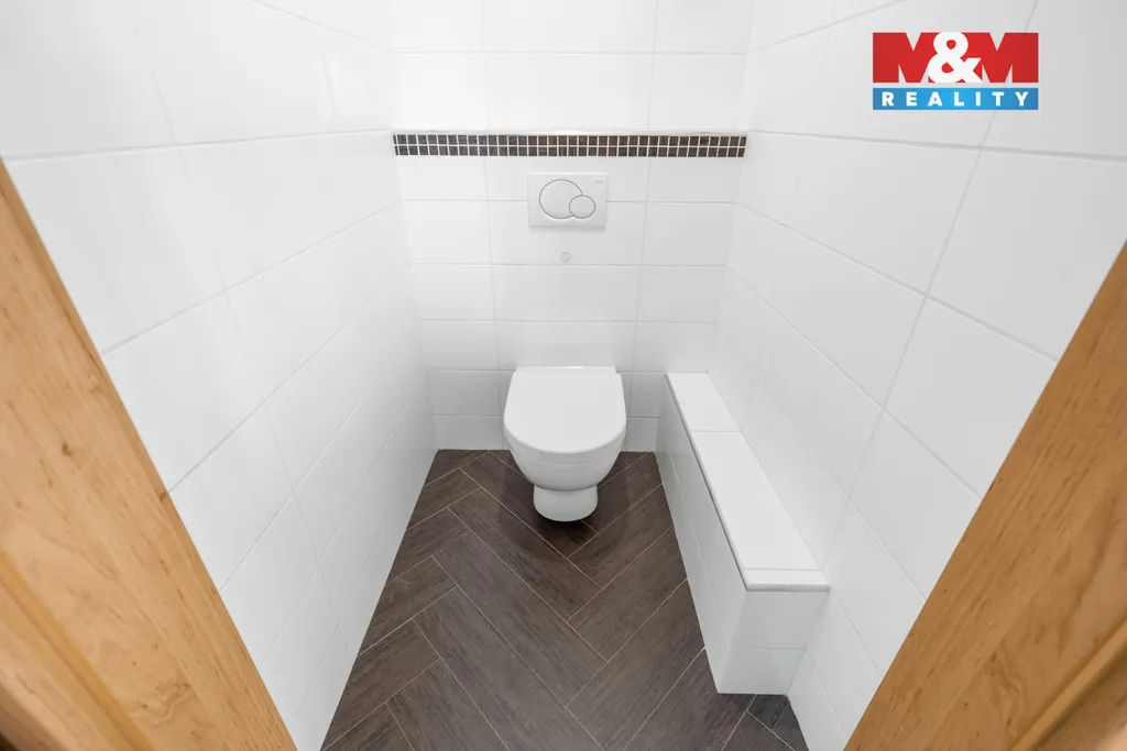 Součástí bytu je prostorná koupelna s vanou i sprchovým koutem, přičemž toaleta je samostatná.