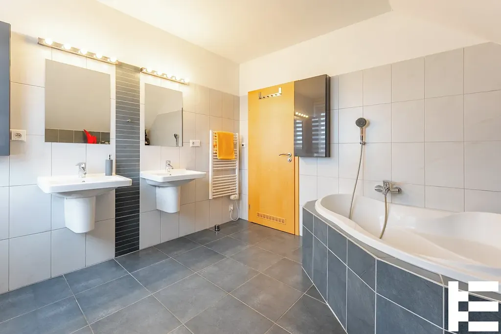 Zde Vás osloví otevřená část, která je využívána jako pracovna s velkými střešními okny, která celou plochu pracovny perfektně prosvětlí. Jedna z tří ložnic poskytuje nádherný výhled do údolí a Brdské hřebeny. Ložnice jsou samostatné s navazující menší místností, která slouží jako úložný prostor, nebo šatna. V patře velká koupelna s rohovou vanou a toaletou.