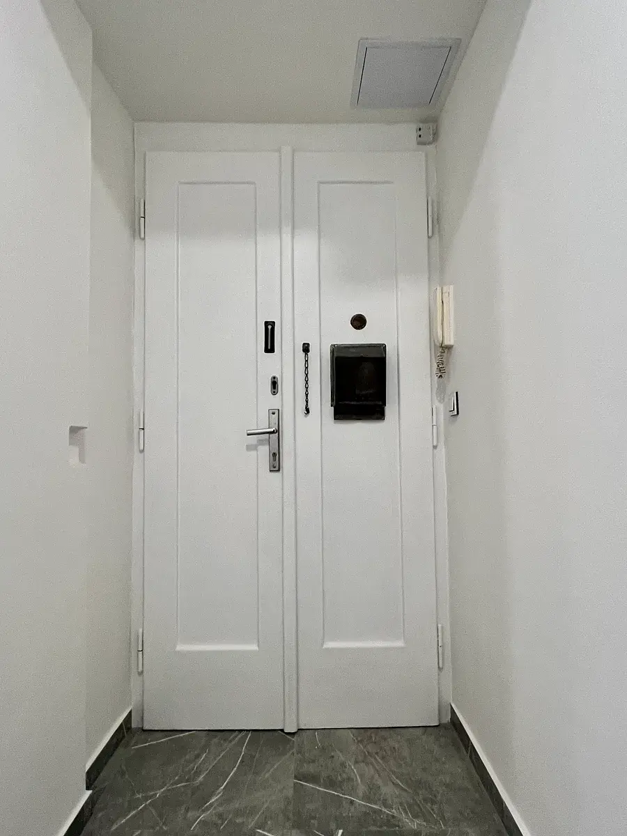 Interiér prošel precizní a kompletní rekonstrukcí, díky které vznikl prostor splňující nároky na současné komfortní bydlení i bezpečnou investici. Dominantou bytu jsou krásné dřevěné podlahy, které dodávají obytným místnostem teplo a eleganci. Vstupní část, koupelna a toaleta jsou osazeny velkoformátovou dlažbou, která podtrhuje čisté linie celého interiéru.