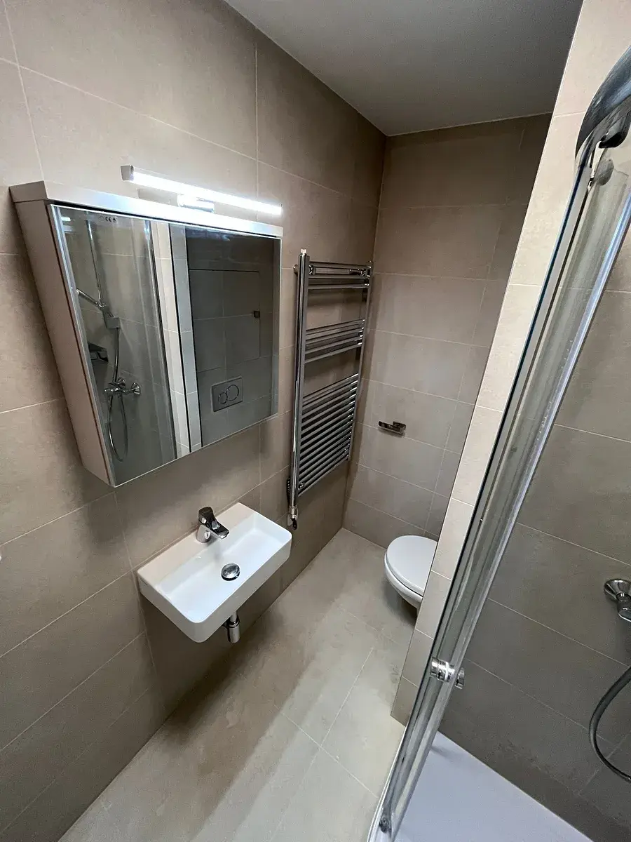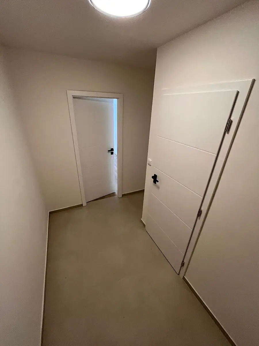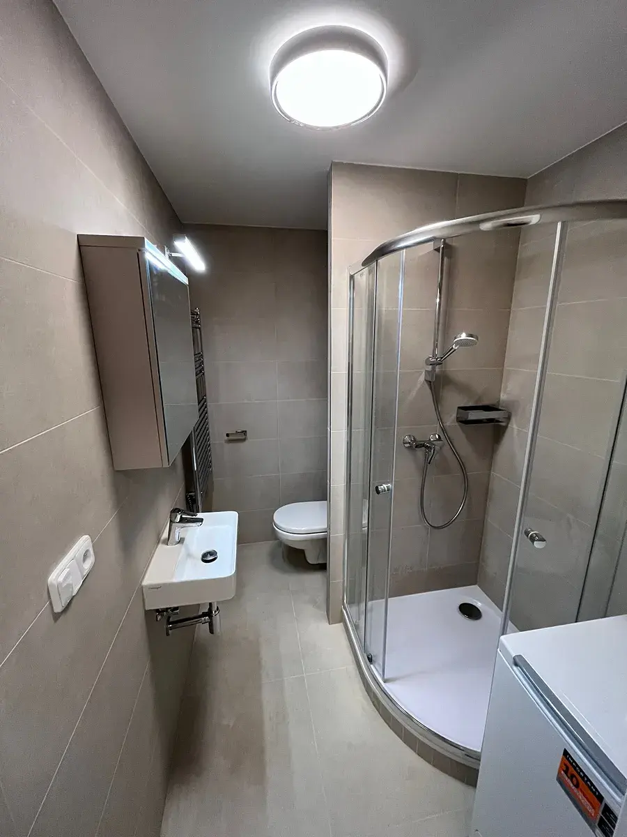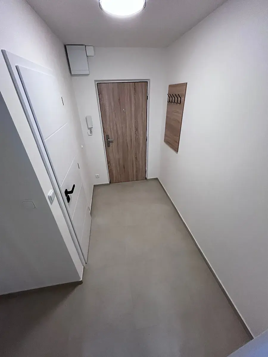 Byt po právě dokončené kompletní rekonstrukci v prvním patře panelového domu. V bytě je chodba, vstup do kouoelny se sprchovým koutem a WC, dále ložnice a obývací pokoj s kuchyňským koutem.