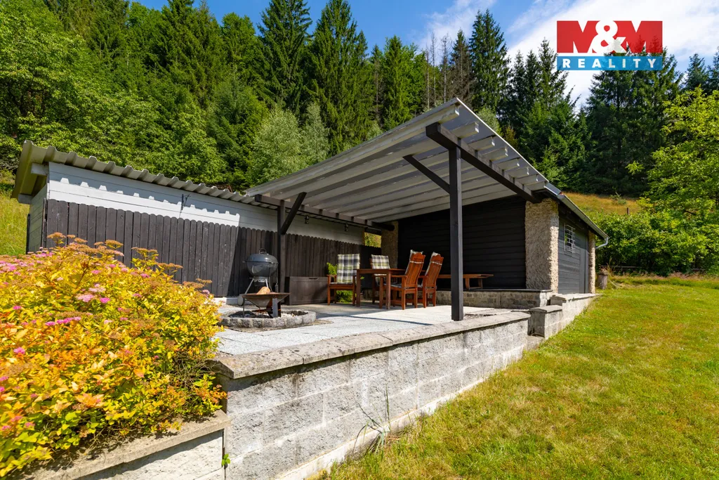 Chalupa s dispozicí 5+1 vám nabízí poctivých 294 m² prostoru, sklep a kamenný krb, ve kterých si zatopíte dřevem z vlastního lesa. K dispozici je i bazén, dílna a pergola (101 m²) pro společné večery.