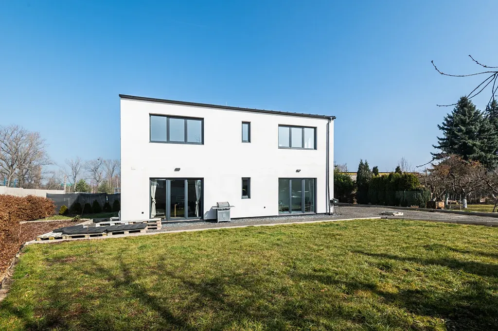 Dům je vybaven moderními technologiemi – vytápění zajišťuje úsporné tepelné čerpadlo vzduch–voda, samozřejmostí jsou okna s trojskly a příprava a rozvody na klimatizaci. Samostatná příjezdová cesta pak zajišťuje klid a dostatek soukromí. Zahrada a místo u domu nabízí dostatek prostoru pro dokončení podle svých představ.