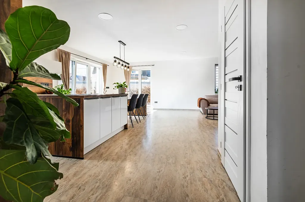 Dominantou přízemí je velkorysý obývací prostor propojený s krásnou kuchyní a jídelnou, který se stane přirozeným srdcem domova – místem pro společné chvíle, rodinné večeře i setkání s přáteli. Ze středové chodby je dále přístup do ložnice, koupelny, technické místnosti a praktického zádveří.
