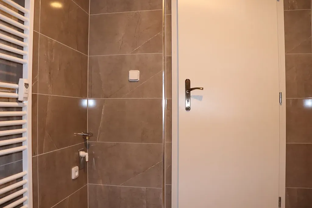 Kuchyňská linka je vybavena malou vestavěnou lednicí. Sporák není součástí kuchyňské linky, ale po dohodě s majitelem bytu lze dovybavit.