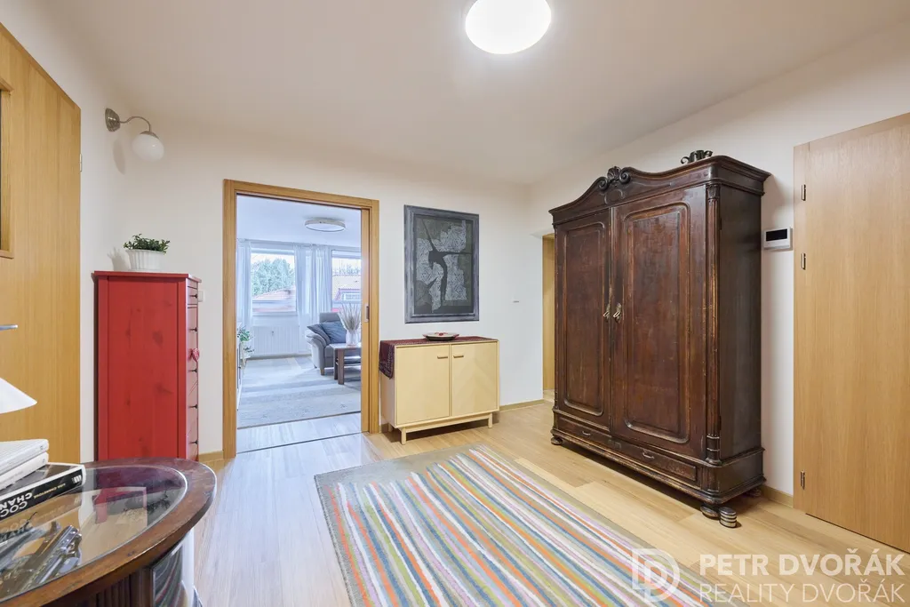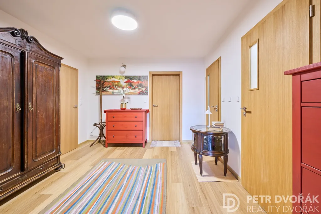 Prostorný byt v osobním vlastnictví dispozice 5+1 s halou o podlahové ploše 109,8 m², situovaný ve druhém nadzemním podlaží nízkopodlažního domu rodinného charakteru v historickém jádru starých Stodůlek. Součástí jsou dva sklepy (2 × 3,4 m²) a lodžie 6,9 m² — celková užitná plocha dosahuje 124,3 m². Svým uspořádáním představuje mimořádně praktické řešení pro dvougenerační soužití s přirozeně oddělenými zónami.