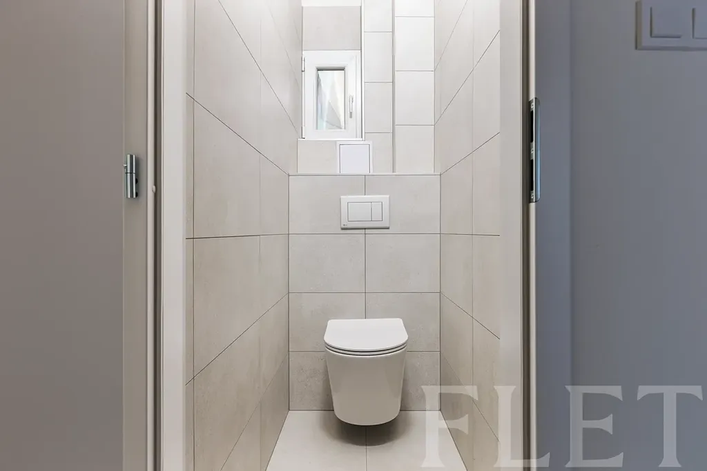 Komfort: Samostatná toaleta (mimo koupelnu) zvyšuje praktičnost bytu pro pár.