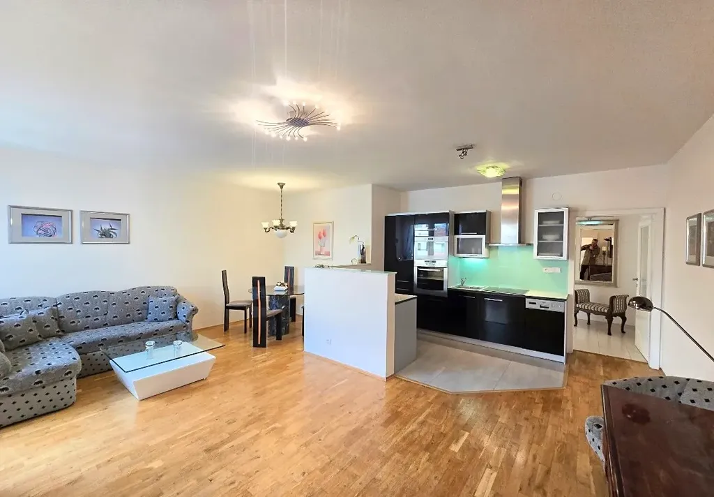 Byt nabízí velmi příjemnou atmosféru, dostatek přirozeného světla a praktické dispoziční řešení. Součástí je moderní kuchyňská linka s vestavěnými spotřebiči včetně myčky nádobí. Byt je částečně zařízen nábytkem dle fotografií, k dispozici je také pračka a prostorné vestavěné skříně, které poskytují dostatek úložného prostoru.