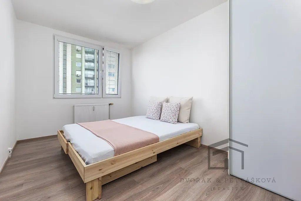 Zrekonstruovaný byt s podlahovou plochou 45 m2 se nachází ve 4.patře domu s výtahem. Byt prošel kompletní rekonstrukcí, je vhodný pro jednotlivce nebo pár a disponuje vstupní chodbou s vestavěnou šatní skříní, oddělenými vstupy do jednotlivých pokojů, na toaletu a do koupelny. Obývací pokoj s kuchyňským koutem je vybavený lednicí s mrazákem, myčkou, horkovzdušnou troubou, indukční varnou deskou, digestoří, mikrovlnou troubou a dostatkem úložného prostoru. Ložnice s výměrou 12 m2 s přístupem z chodby je vybavena manželskou postelí a vestavěnou šatní skříní. Koupelna se sprchovým koutem a pračkou s vrchním plněním. Veškerý nábytek na fotografiích je součástí ceny pronájmu a zůstává v pronajímané nemovitosti. Ohřev vody a teplo dálkově z teplárny. K bytu náleží sklepní kóje.