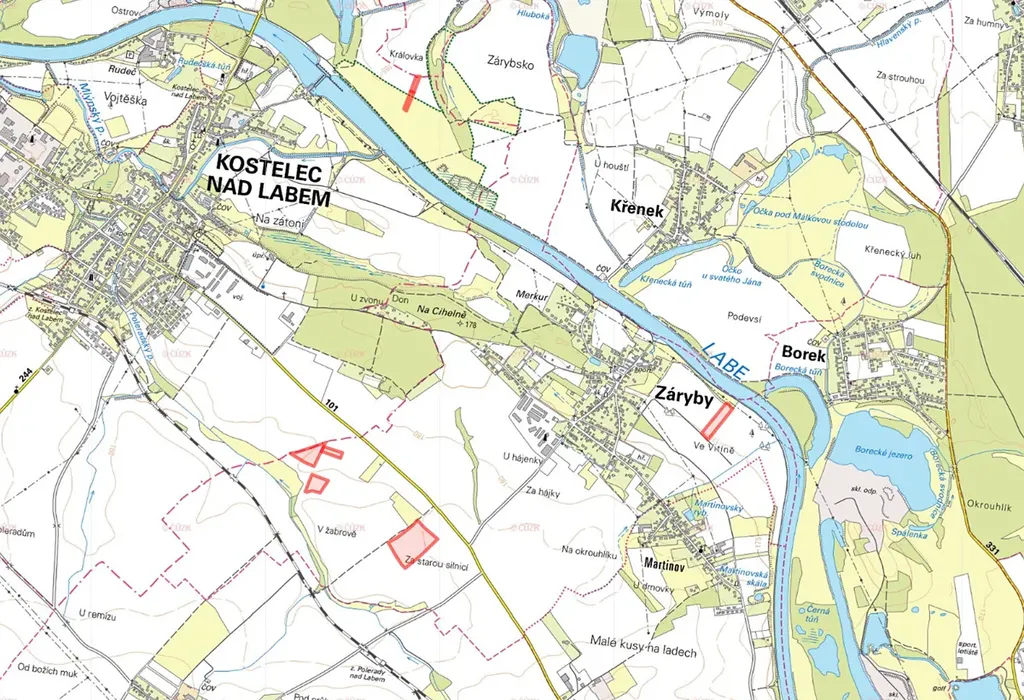 V katastrálním území Kostelec nad Labem (okres Mělník) jsou pozemky zapsány na LV 1112 a jedná se o parcelu č. 1400/32 s druhem trvalý travní porost a parcelu č. 1399/23 s druhem orná půda.