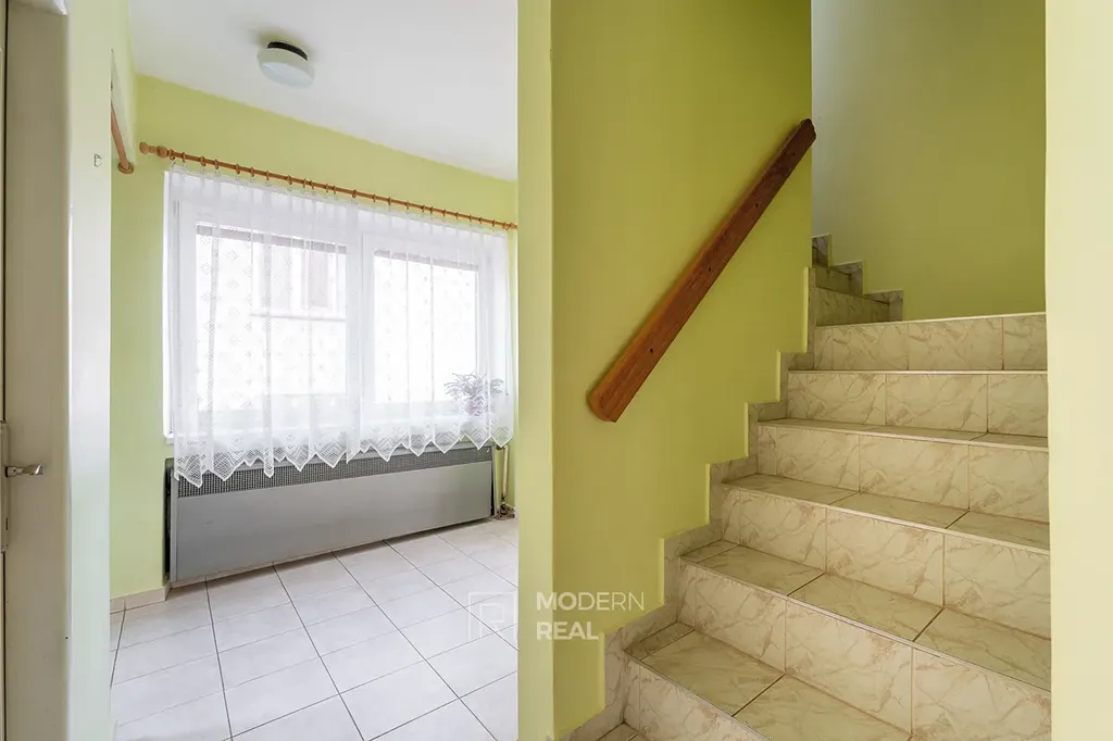 K dispozici je též velký sklep pod domem, vhodný pro uskladnění sportovního vybavení či sezónních věcí. Garáž, kterou lze snadno rozšířit na parkování dvou vozidel za sebou. Další parkovací místo je vedle domu.
