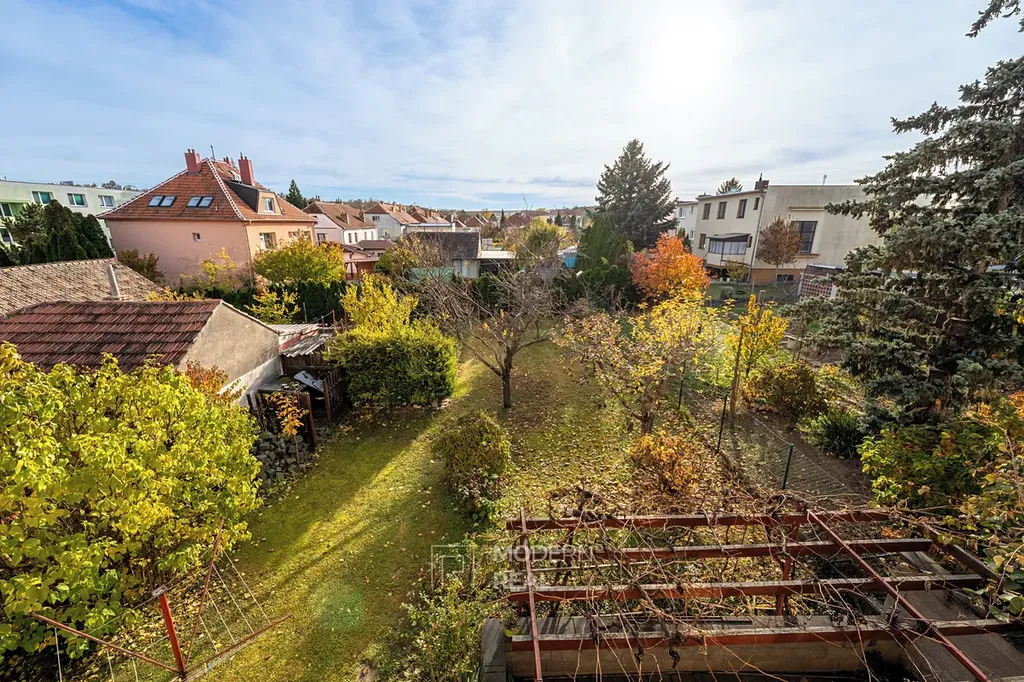 Součástí domu je udržovaná zahrada orientovaná na jih, která poskytuje dostatek soukromí a prostoru pro odpočinek či rodinné posezení. Pro úsporu vody je k dispozici podzemní zásobník na dešťovou vodu – praktické a ekologické řešení pro zavlažování zahrady.