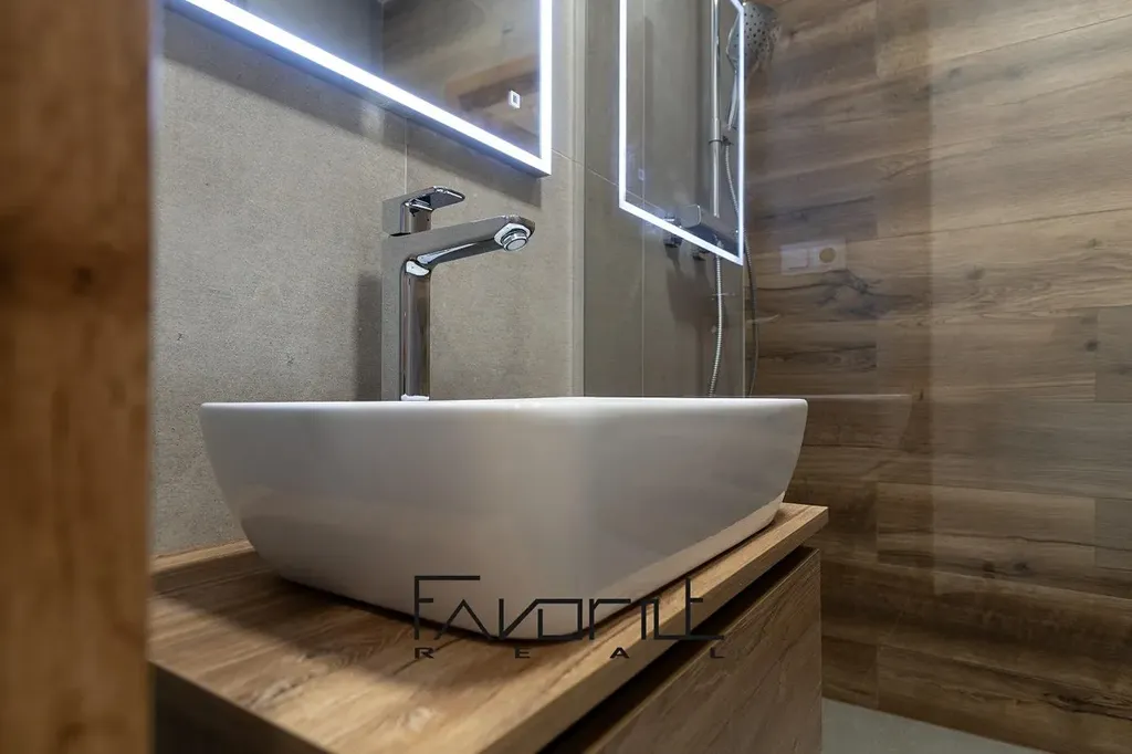 V rámci rekonstrukce byly provedeny nové rozvody elektřiny, vody a odpadů, moderní kuchyňská linka, nová koupelna, podlahy, interiérové dveře a omítky.