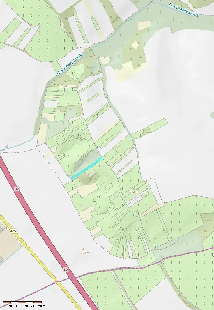 Celková délka pozemku je cca 245 m.