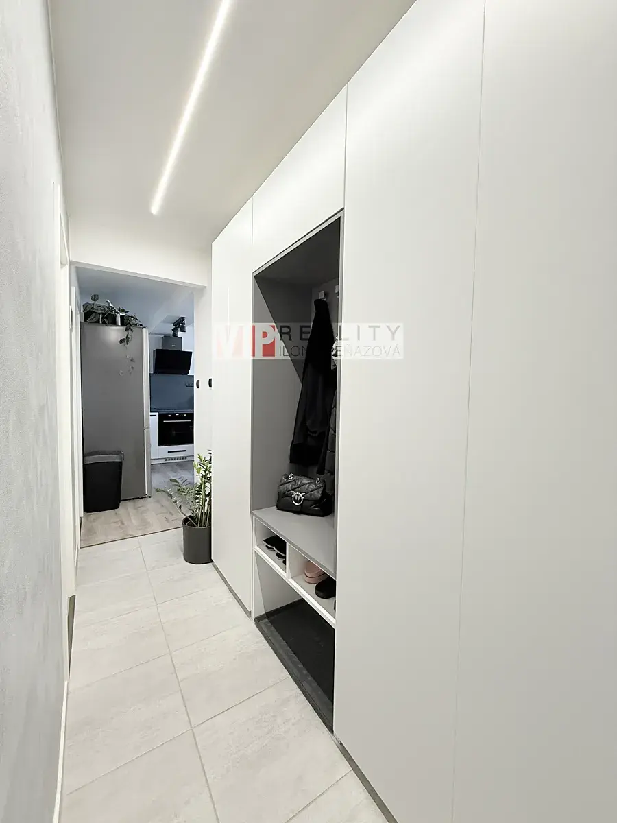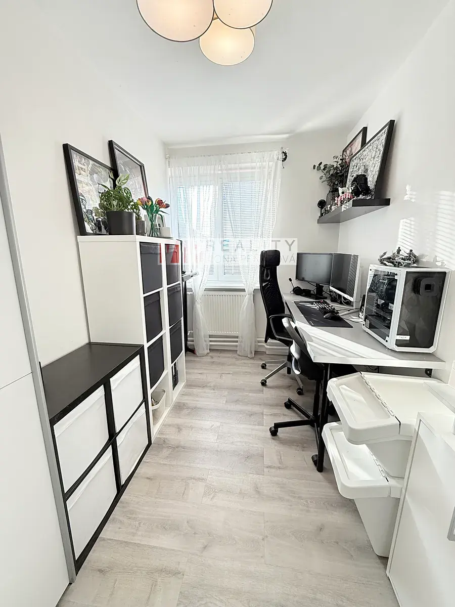 Byt prošel rekonstrukcí a nabízí praktické dispoziční řešení. Po vstupu do bytu se ocitneme v předsíni, ze které vedou samostatné vstupy do všech místností – koupelny se sprchovým koutem a toaletou, dále do hlavního obytného prostoru s kuchyňským koutem, ložnice a třetího pokoje, který je ideální jako pracovna či dětský pokoj.