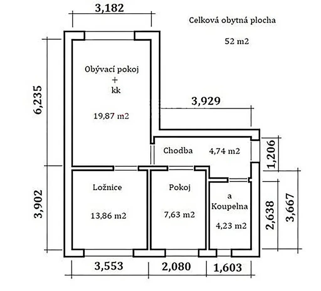 | Užitná plocha | 52 m2 |