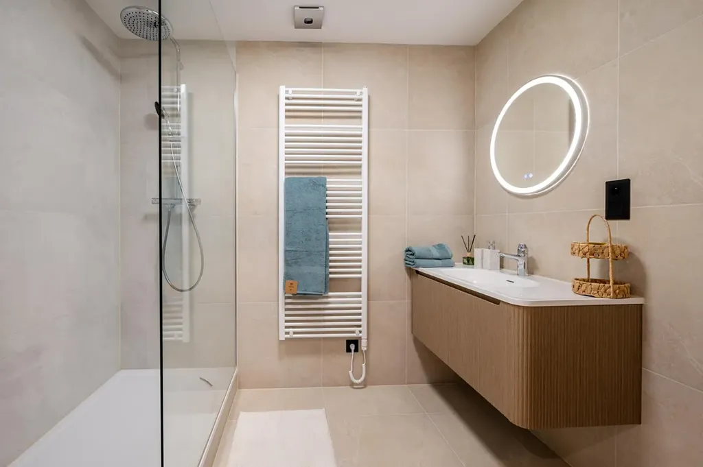 V rámci nedávné rekonstrukce byly v bytě položeny nové podlahy, instalovány kompletní rozvody a upraveny veškeré povrchy. Srdcem bytu je nová kuchyňská linka plně vybavená moderními spotřebiči, včetně lednice, mikrovlnné i horkovzdušné trouby, indukční varné desky a vestavné myčky. Koupelna s vyhřívanou podlahou, zrcadlem a topným žebříkem. Sprchový kout s termostatickou hlavicí. WC s bidetovou sprchou.