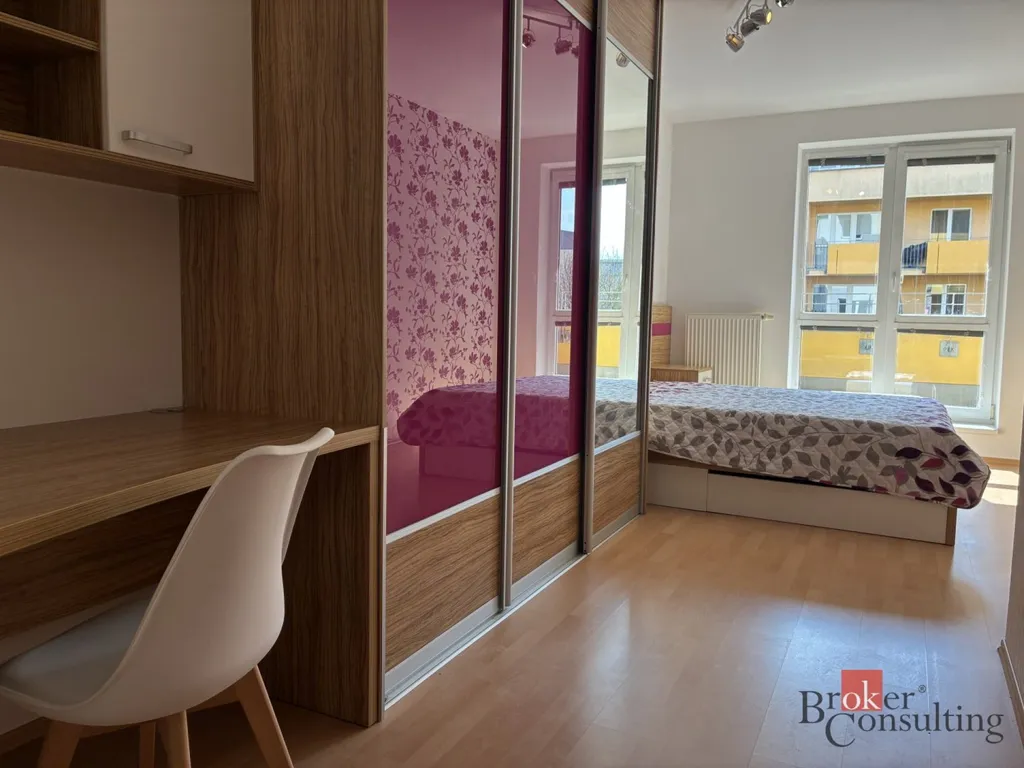 Nabízím k pronájmu světlý a velmi příjemný byt o dispozici 2+kk a celkové výměře 50 m², situovaný ve 2. nadzemním podlaží moderního bytového domu s výtahem v atraktivní a klidné lokalitě Hradce Králové. Byt zaujme praktickým dispozičním řešením a především prostornou lodžií, která je přístupná jak z obývacího pokoje s kuchyňským koutem, tak z ložnice, což výrazně zvyšuje komfort bydlení a nabízí příjemné místo pro relaxaci. Kuchyňská linka je vybavena spotřebiči a byt se pronajímá částečně zařízený, což umožňuje okamžité nastěhování bez nutnosti větších investic.