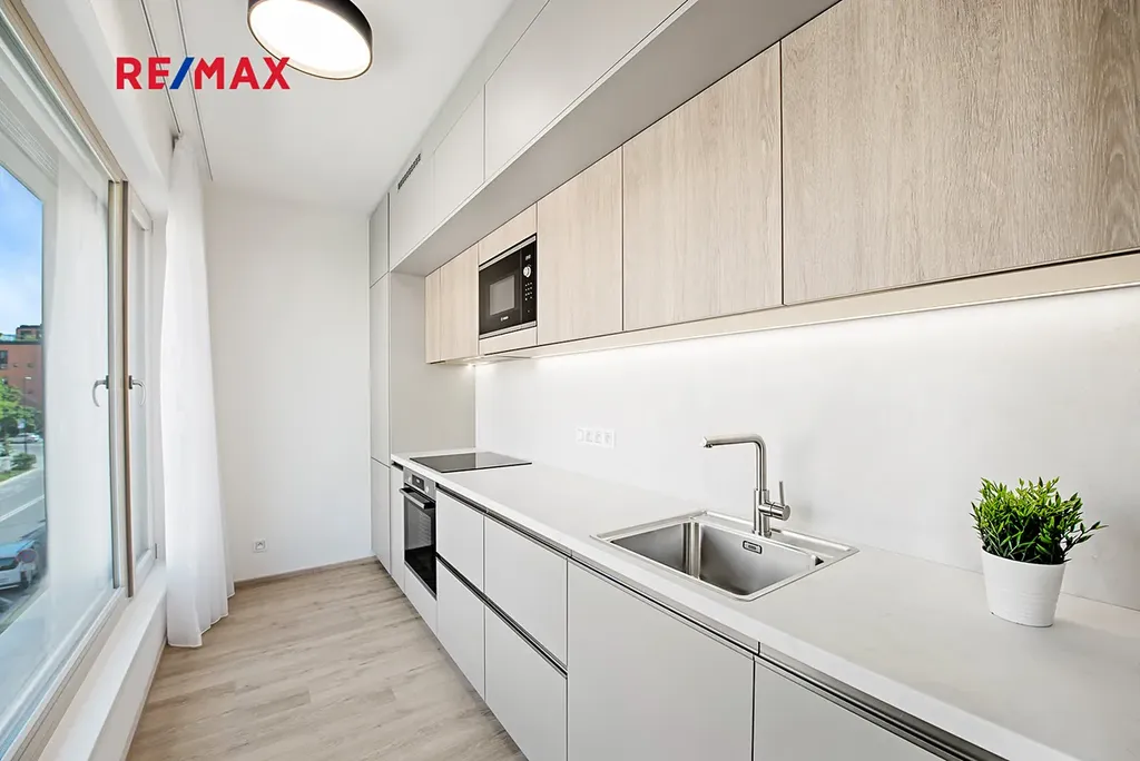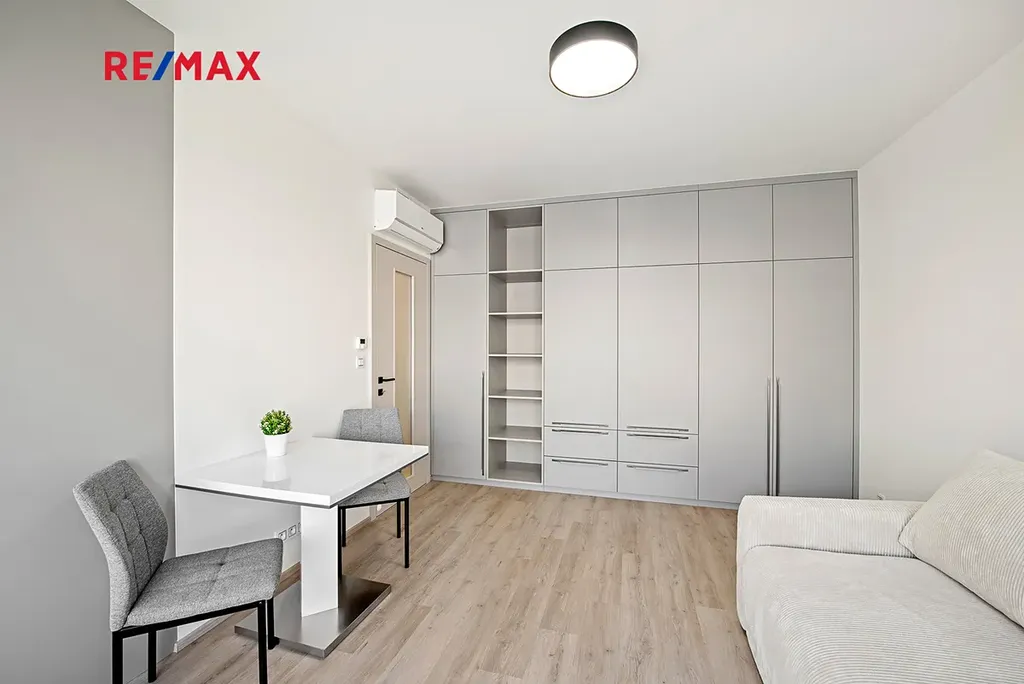 K pronájmu nabízíme zcela nový byt 1+kk o velikosti 35,7 m² v moderní rezidenci Parková Čtvrt od renomovaného developera Central Group, Praha 3 – Žižkov. Jedná se o první pronájem, byt dosud nebyl obýván. K bytu náleží sklep v -1. podlaží o ploše 3 m². Byt je plně zařízený – rozkládací pohovka, jídelní stůl a židle. K dispozici je nová kuchyňská linka se všemi vestavěnými spotřebiči (trouba, varná deska, myčka, lednice) a velkorysé úložné prostory – jak v chodbě, tak i v obytné části. Dále byt je zařízen klimatizační jednotkou.