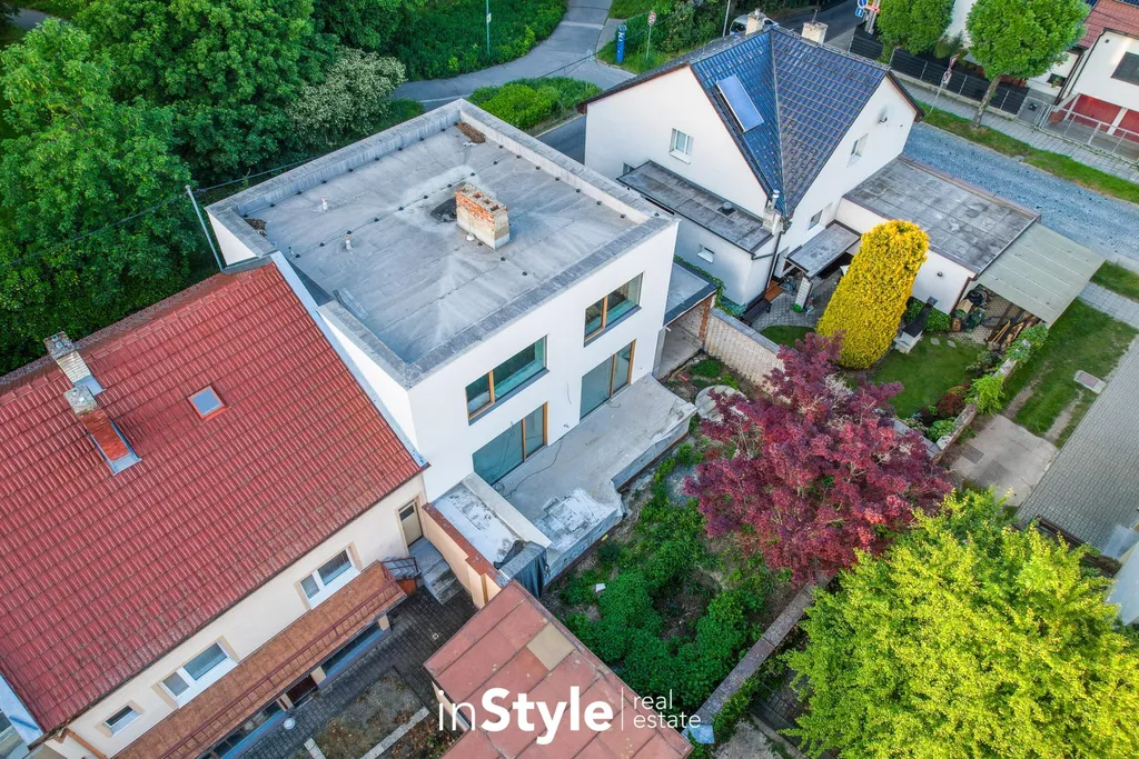 Rodinný dům 4 + kk s užitnou plochou 272 m stojí na pozemku o velikosti 271 m v klidné části města, přímo u parku. Původní dům z roku 1932 byl v roce 2021 téměř kompletně zbourán a na jeho místě vznikla zcela nová stavba, která je nyní ve stavu Shell and Core tedy připravená k dokončení interiéru, garáže, terasy i okolních ploch.