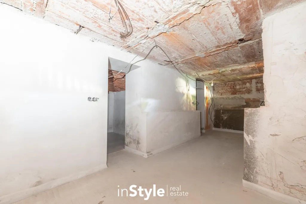 Dům je kompletně podsklepený, se zázemím pro technickou místnost, dílnu, sklad i vinný sklep s posezením. V přízemí se nachází vstupní chodba, koupelna se sprchovým koutem, samostatné WC a prostorný obývací pokoj s přípravou pro krb a vstupem na terasu. Ve druhém podlaží pak naleznete hlavní ložnici s výhledem do parku, dva dětské pokoje orientované do vnitrobloku, další koupelnu s vanou a samostatné WC.