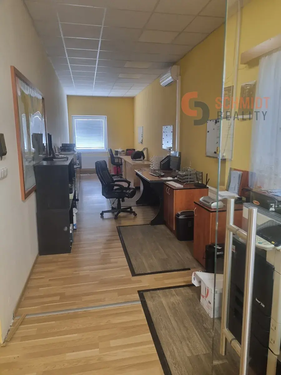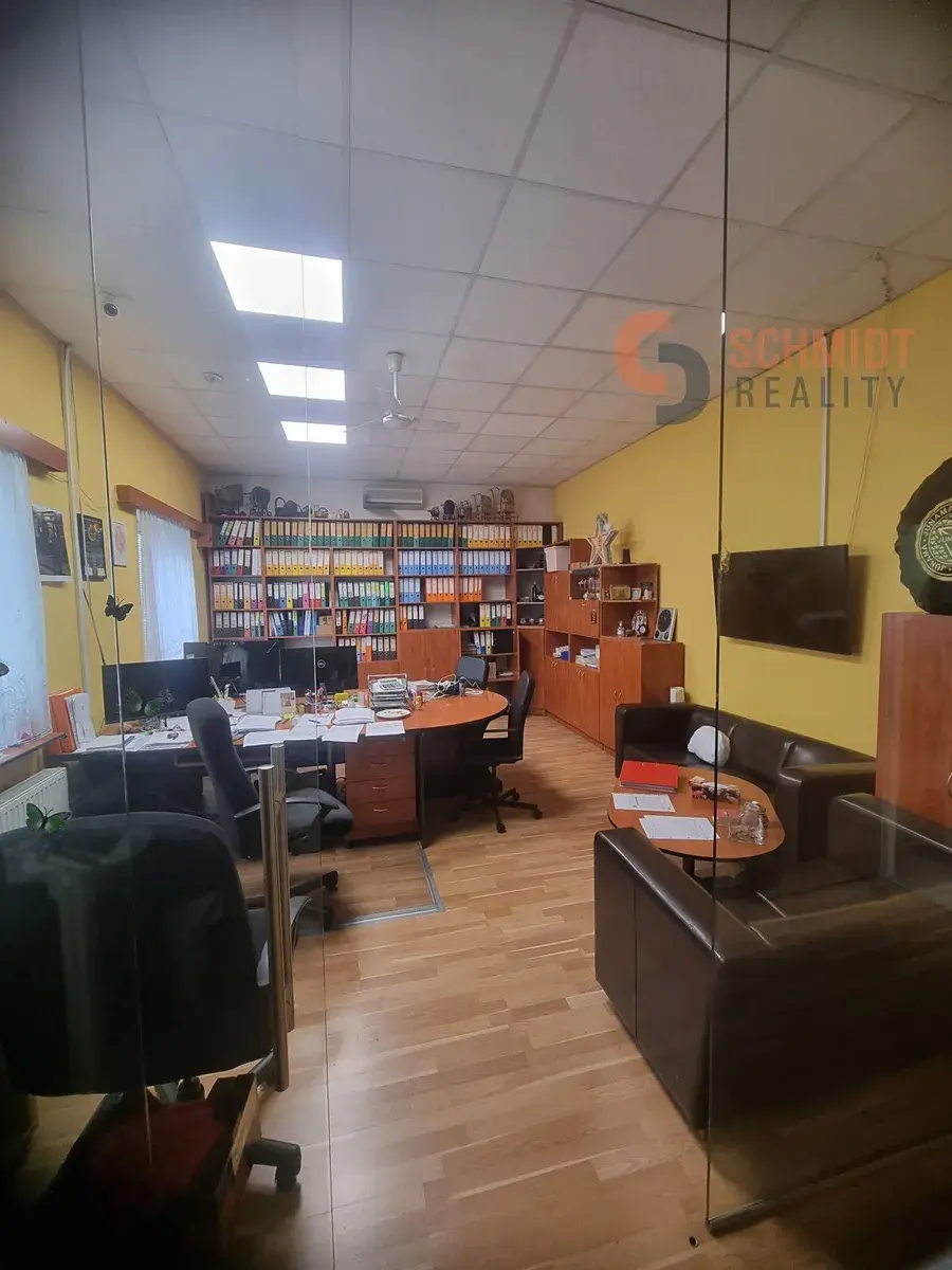 Ve výhradním zastoupení majitelky nabízíme k pronájmu vybavené kanceláře 60m2 , sklad 100m2 a zázemí 45m2 (WC, kuchyňka, příruční sklad, malá dílna) a to vše na jednom patře (2NP) v budově na ulici Křenová.