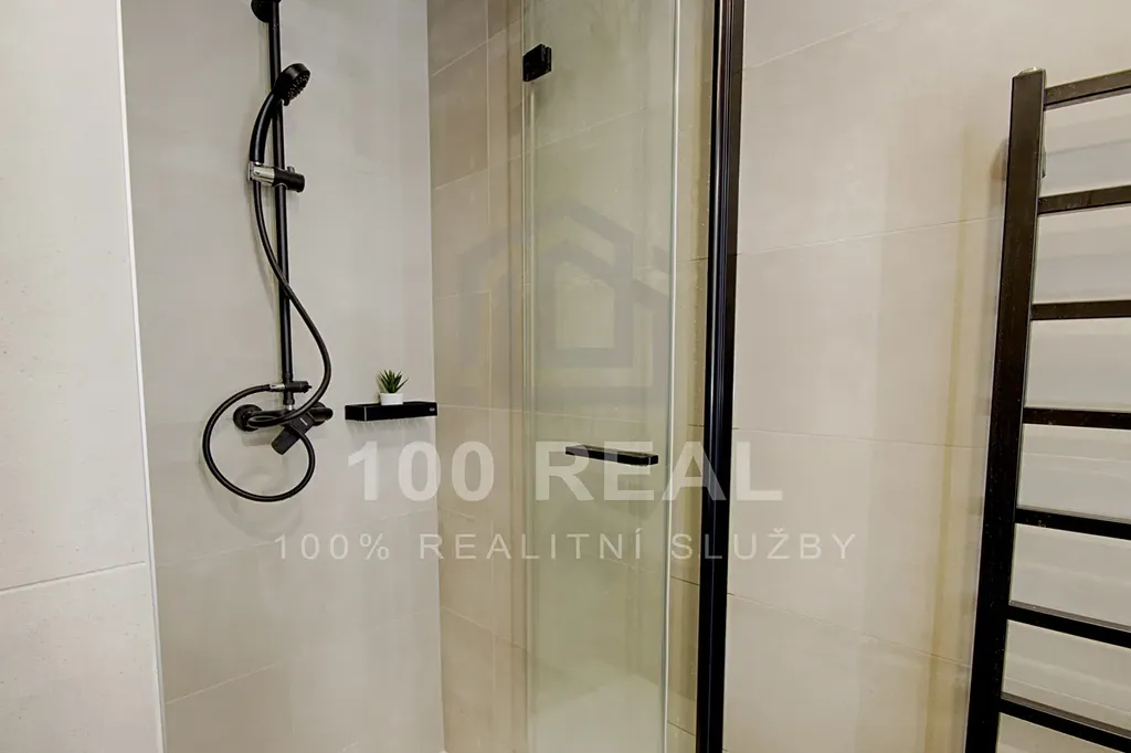 - koupelna se sprchovým koutem, umyvadlem, umyvadlovou skříňkou, topným žebříkem, pračkou a sušičkou zn. Elektrolux (3,97 m²)