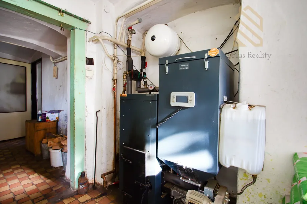 Nemovitost je vytápěna kotlem na pelety a vodu ohřívá elektrický bojler. Okna, střecha ,podlahy jsou původní, nicméně v nemovitosti je možné po menších úpravách bydlet. Na pozemku se nachází využitelná garáž, prádelna, dřevník a zachovalá stodola,dále půda ze které lze vybudovat další bytová jednotka.Dům má vlastní studnu a je napojen na vodu ,elektřinu, plyn, vše v původním stavu. Na nemovitost lze čerpat státní dotaci.