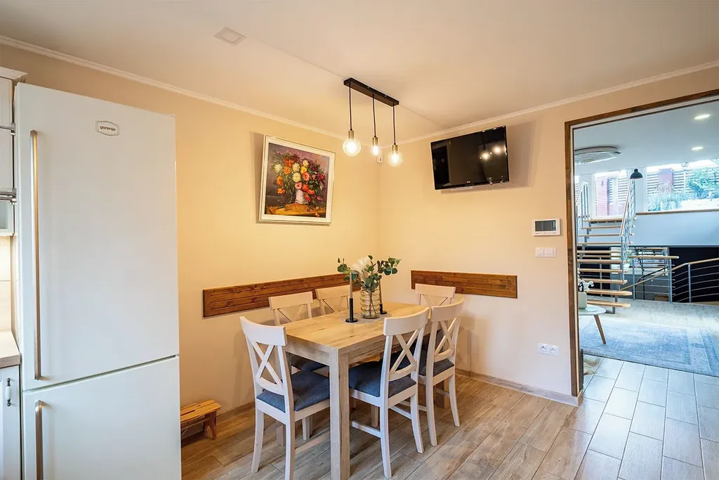 Nabídka rodinných domů na prodej ve Vysokém Mýtě za moc nestojí a proto vám přináším tuto novinku v podobě nadstandardního a lehce atypického kompletně rekonstruovaného domu. Definuje naprostý ideál pro ty, kdo chtějí využívat benefity bydlení v centru města, ale zároveň mít klid. Tato kombinace činí nemovitost jedinečnou. Nacházíme se totiž 3 minuty pěšky od náměstí. Zahrada (vzhledem k vydláždění a absenci travních ploch ji můžeme nazvat i terasou ), směřuje do vnitrobloku a odklopují ji další zahrady, takže ruch města zde téměř nevnímáte. Přímo vedle vchodu se nachází prostorná garáž, do které se kromě vozu vejdou i třeba kola, nebo vám poslouží jako dílna. Další dvě auta zaparkujete před vstupem. Dům nabízí velkorysou obytnou plochu a je vybaven podlahovým vytápěním (pouze oba pokoje v druhém patře disponují radiátory) a klimatizací.