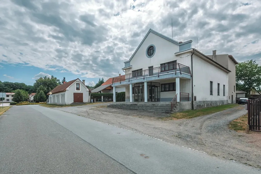 Představuji vám rozlehlou nemovitost se zajímavým potenciálem využití. Budova se nachází v centru obce a většinu její plochy tvoří velký sál s jevištěm - bývalý obecní "kulturák". Na něj navazuje hospoda o rozloze 132 m2, která je stále v provozu a nad ní najdete byt s plochou 107 m2 s balkonem 14 m2, který je nyní pronajímán (na fotkách není, uvidíte ho při prohlídce). Součástí je i pozemek před domem, který poslouží jako parkoviště a menší pozemek za domem. Oba s celkovou rozlohou cca110 m2. Pod jevištěm se nachází sklepy a kotelna. Hospoda a byt jsou vytápěny plynovými kotli a sál kotlem na tuhá paliva. Stavba je v celkově dobré kondici a jeví se vhodnou na případnou přestavbu na bytový dům. Kousek od obce je nájezd na dálnici, takže do Hradce, Pardubic, či Prahy dojedete snadno a rychle. Ať již je váš záměr jakýkoliv, rád si ho poslechu. Takže vemte kámoše a přijeďte do Klamoše.