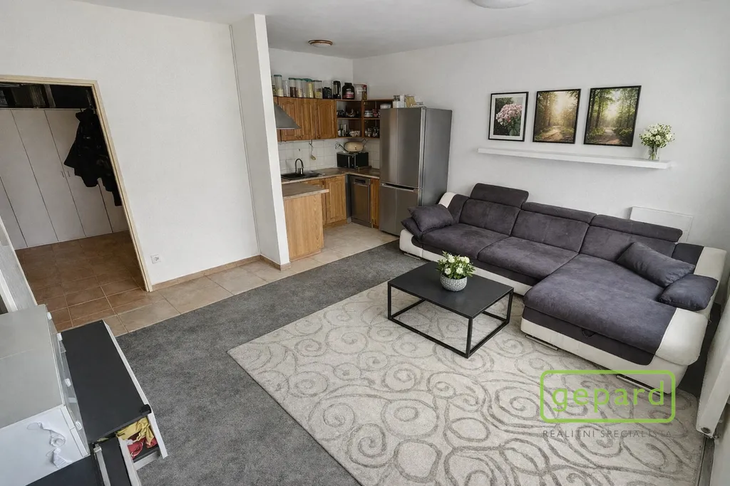 Dominantou bytu je vzdušný obývací pokoj s kuchyňským koutem, který přirozeně vybízí k odpočinku i společným chvílím. Samostatná ložnice poskytuje klidné zázemí pro nerušený spánek. Nechybí koupelna s vanou, oddělené WC, praktická komora a dostatek úložných prostor v prostorné vstupní chodbě.