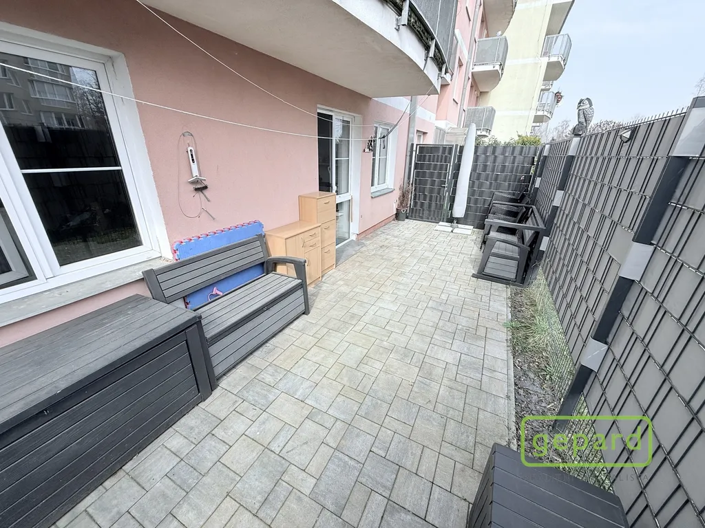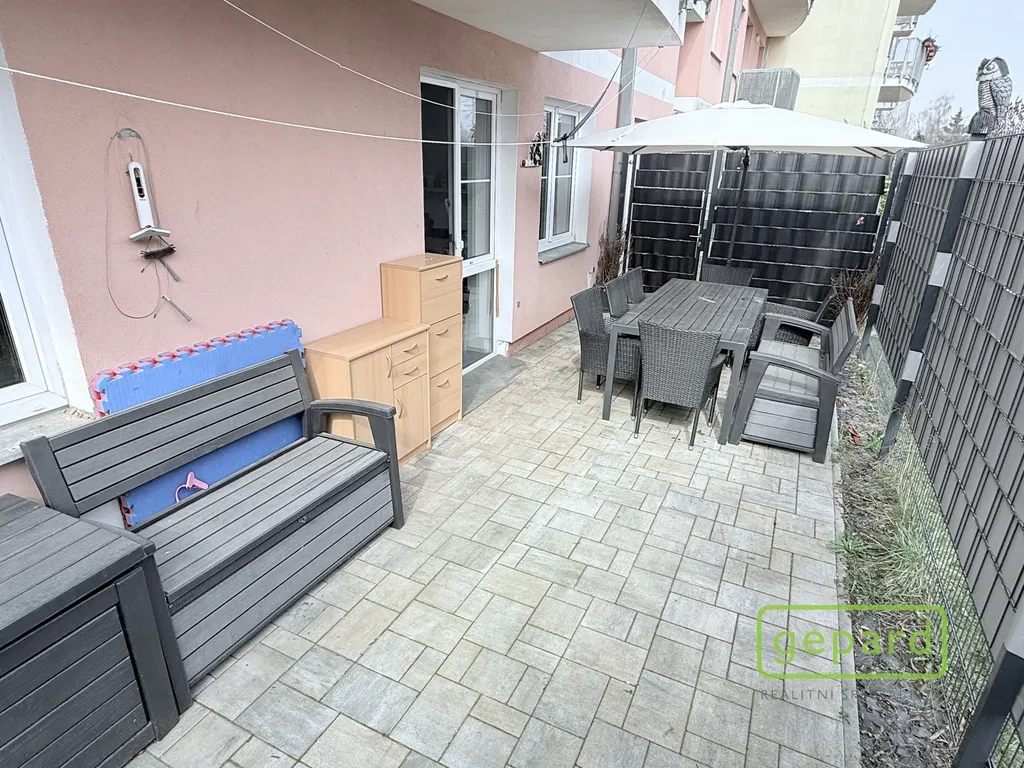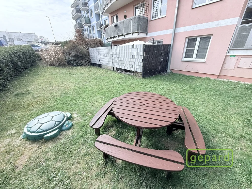Byt vás zaujme nejen praktickou dispozicí, ale především přímým vstupem na vlastní předzahrádku o velikosti cca 30 m², která plynule navazuje na společnou zahradu. Ta je mezi sousedy minimálně využívaná a nabízí tak příjemné soukromí – ideální místo pro ranní kávu, letní posezení nebo bezpečný prostor pro děti.