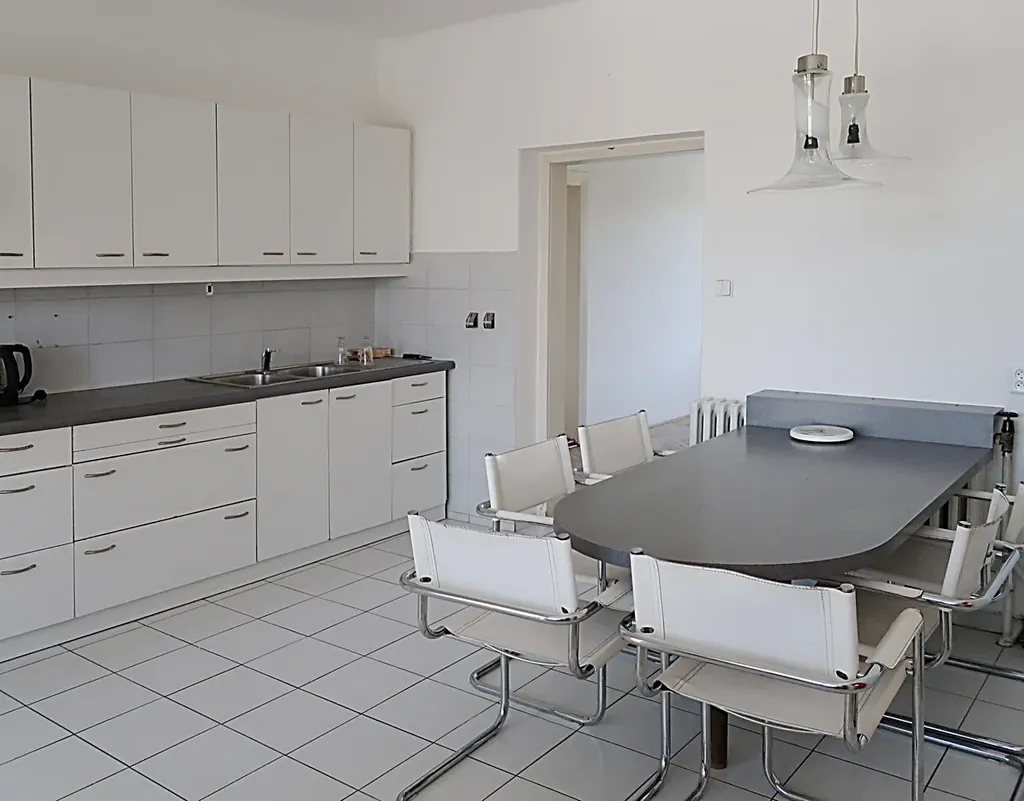 Dovolujeme si vám nabídnout zprostředkování prodeje rodinné vily s krásnou zahradou na náměstí městyse Křižanova, která splňuje nároky na kvalitní a příjemné bydlení. Původní jednopodlažní dům prošel několika přestavbami, kdy poslední rozsáhlá rekonstrukce byla zahájená v r. 1995. Výsledkem je moderní, nadčasový objekt ve stylu neofunkcionalismu. Díky svému umístění nabízí dům krásný výhled na historické náměstí. Jednou z předností tohoto třípodlažního podsklepeného domu s velkorysým obytným podkrovím a garáží, který je nyní koncipován jako vícegenerační, je jeho účelová variabilita. Dům je celý podsklepený. Samostatná část sklepních prostor se zvláštním vstupem ze zahrady je řešena ve formě tří místností (50 m2) s vytápěním, připravené pro praxi veterinárního lékaře. Prostory 1. NP jsou kompletně vybavené a připravené pro provozování lékařských ordinací, nabízí se tedy varianta podnikání (ordinace/ kanceláře) v kombinaci s luxusním rezidentním bydlením, a nebo investiční záměr s následným pronájmem. Ze vstupní haly je zajištěn oddělený přístup do obytné části domu tak, aby bylo zachováno soukromí majitelů a následně vstup do další části podlaží s nebytovým prostorem, nyní ordinací. 1. NP - vstupní chodba, dvě ordinace resp. kanceláře, čekárna, místnost pro zdravotní sestru, kuchyňka, sociální zázemí. V obytné části navazuje předsíň na prostornou obytnou halu s otevřeným vřetenovým centrálním schodištěm propojujícím jednotlivá podlaží. V jižní části domu s orientací do zahrady je řešeno propojení s nádvořím s venkovním posezením a krbem. 2. NP - byt 3+1 se zimní zahradou o celkové podlahové ploše 118 m2 + 32 m2 terasa. 3. NP – byt 3+1 (85 m2 + 7,5 m2 lodžie + 3,5 m2 balkon). Zastavěná plocha domem s nádvořím činí 465 m2, celková výměra pozemku je 1395m2. Rekonstrukce domu zahájená v roce 1995 byla provedena dle návrhu architektonické kanceláře, kdy byla majiteli požadována celková změna koncepce stávajícího domu na architektonicky zajímavou a moderní stavbu s použitím kvalitních, nadčasových designových materiálů. Ta zahrnovala přístavbu zahradního křídla s vybudováním prostoru pro ordinaci odborného lékaře včetně zázemí a kancelář, provedení nové vazby pro vytvoření podkrovního bytu s lodžií, osazení dubových dveří a atypických dubových oken s dvojskly, nové rozvody el. energie, vody, odpadů, vybudování centrálního otevřeného schodiště s mramorovým obkladem stupňů, rozvody podlahového el. topení doplněnými přímo topnými tělesy, nové dlažby a povrchy podlah, vybudování teras ( povrch přírodní kámen) se skleněnými posuvnými výplněmi. V roce 2010 byl proveden zateplovací systém, fasáda, klempířské práce, v roce 2024 nátěr fasády a střecha byla opatřená novým střešním pláštěm (svařovanou plastovou střešní fólií). Součástí kupní ceny je i vybavení domu designovým nábytkem, který splňuje záměr architekta na kvalitu a jednoduchost bydlení (viz fotodokumentace). Pečlivě udržovanou okrasnou zahradu se vzrostlými jehličnatými stromy, keři a květinami navazující na dům odděluje od užitkové zahrady moderní bungalov, který vznikl rekonstrukcí původní stodoly. Objekt o podlahové ploše 60m2 je možno vytápět samostatnými kachlovými kamny na elektřinu. Veškerá plocha zahrady je zavlažována automatickým systémem. Vydatným zdrojem vody je jednak vlastní kopaná studna na pozemku, jednak hlubinný vrt (33 m) - vše napojeno na závlahu ovládanou centrální jednotkou. Zahrada v celé své déle 90 m je oplocena masivní zdí z bílých cihel s kovanými plotovými prvky, vstupní branou a brankami. Inženýrské sítě: dům je napojen na veřejný vodovodní řad, na pozemku jsou další 2 studny Elektrická energie 230V, 400V, plynová přípojka v 1. PP, rozvod v domě není proveden, splašková i dešťová kanalizace napojena přes septik na veřejnou kanalizaci. Dům je vytápěn el. energií. V 1. NP přímo topná tělesa, 2. NP elektrokotel, 3. NP elektrické podlahové topení v kombinaci s přímo topnými tělesy, ohřev TUV zajišťují el. ohřívače. Zahrada i dům je v perfektním a udržovaném stavu, bez právních vad, vše vymalováno, uklizeno a připraveno k okamžitému prodeji a nastěhování. Více podrobných informací v RK. Městys Křižanov leží na hlavní trase mezi Brnem a Prahou, v srdci Českomoravské vrchoviny, s výbornou dostupností dálnice D1 (od Brna EXIT 164 Velká Bíteš 15km ) nebo od Prahy (EXIT 141 Velké Meziříčí 9 km) a současně s možností využití vlakového i autobusového spojení. Jedná se o městys s veškerým občanským vybavením (zdravotní středisko, základní a mateřská škola, restaurace, drobné obchody a služby, zájmové a sportovní organizace). Okolní krajina nabídne milovníkům přírody spoustu zajímavých turistických lokalit. V zimním období nabízí vyžití v lyžařském areálu v nedalekém Novém Městě na Moravě