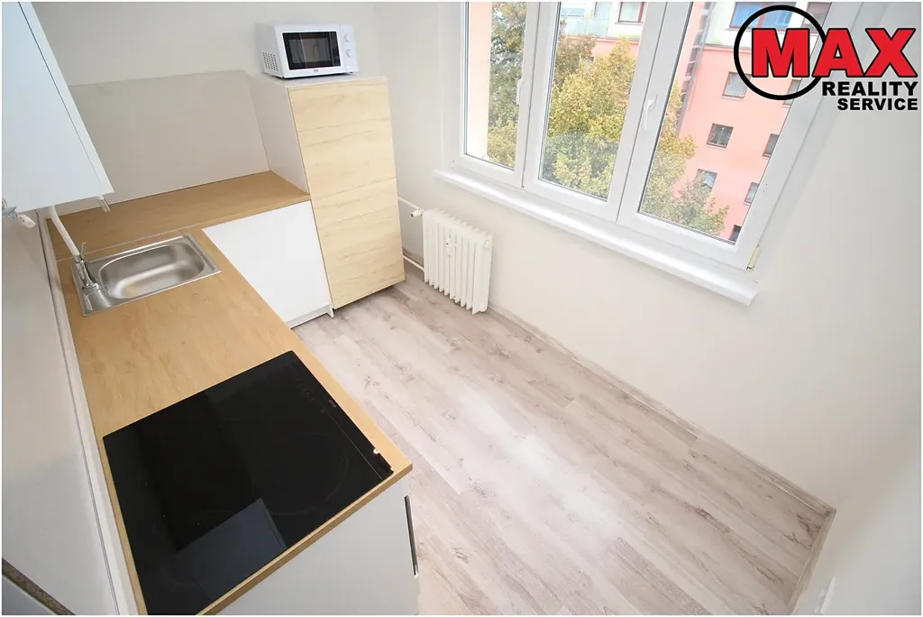 Byt je nově zařízený (kuchyňská linka IKEA se spotřebiči (el.sklokeram. deska, el.trouba, lednice s mrazákem, mikrovlnka, digestoř).