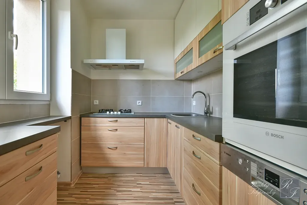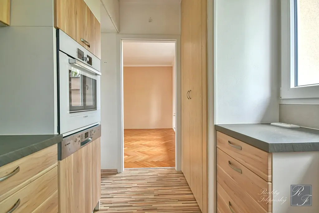 Bytová jednotka je aktuálně nově vymalována a jsou zbroušeny parketové podlahy. V nedávné době byla zrekonstruována koupelna, toaleta i kuchyně. Ta je vybavena elektrickou troubou, plynovou varnou deskou i myčkou nádobí.