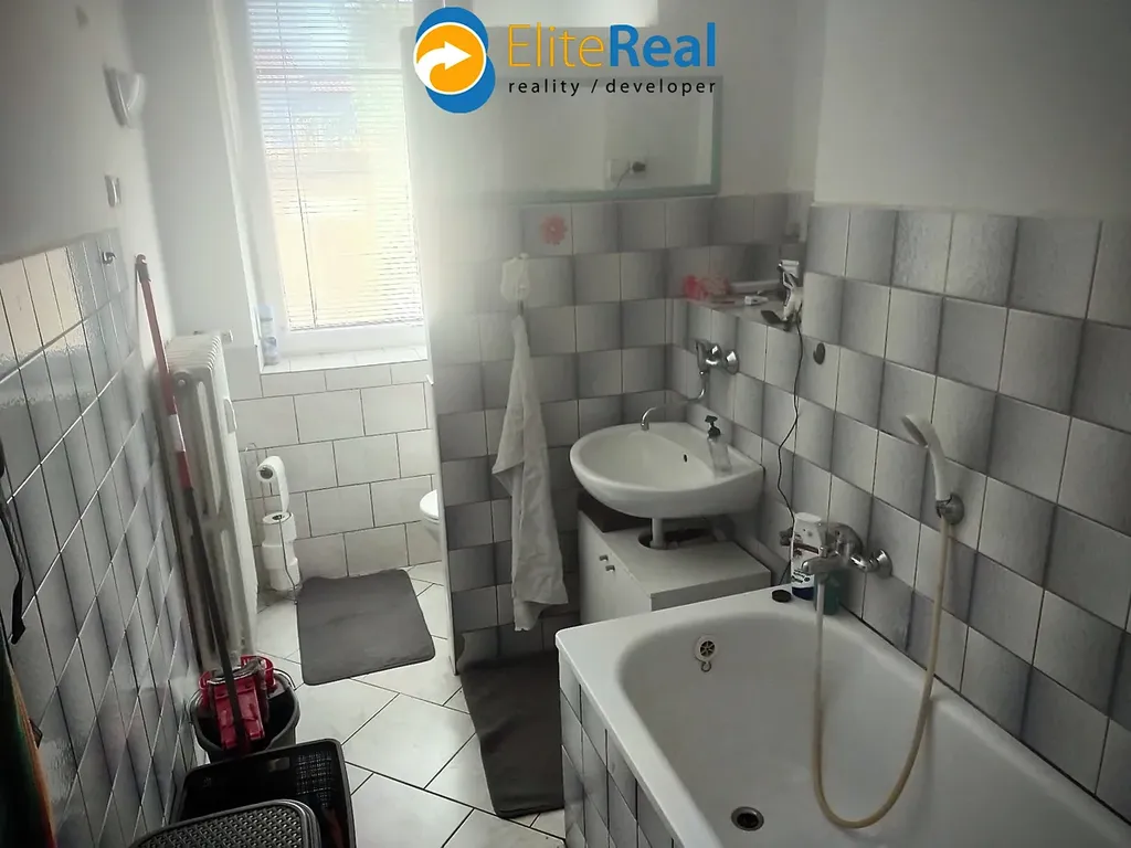 Elite real service s.r.o. Vám ve výhradním zastoupení majitele nabízí prodej bytu 1+1 54m2 na ulici Purkyňova, Olomouc. Byt se nachází v 1.NP domu pouze se čtyřmi bytovými jednotkami. Parkování je bezproblémové, veřejné před domem. Plocha jednotky 54m2 bez balkonu + 7m2 sklep. Byt je v původním stavu, určen k modernizaci dle vlastních představ. Byt lze rekonstrukcí předělat na prostorný byt 2+kk. Dispozičně je byt řešen jako průchozí. Z chodby přístup do kuchyně a koupelny s WC, z kuchyně vstup do pokoje. Wc a koupelna společně - vana, umyvadlo, zrcadlo, WC. Podlahy: v pokoji a kuchyni plovoucí podlaha, v chodbě a koupeně dlažba. Plastová okna, žaluzie. Měsíční předepsané inkasní poplatky ve výši 4.549,-Kč zahrnují: osvětlení spol. prostor: 75,-Kč, teplá voda: 1.200,-Kč, teplo: 1.624,-Kč, fond oprav: 1000,-Kč, vodné a stočné: 480,-Kč, poplatek za správu 170,-Kč. K bytu náleží prostorný sklep 7m2 v 1.PP domu. Za domem k dispozici společný dvorek, na kterém lze případě grilovat apd. Vyhledávaná a klidná lokalita v blízkosti centra Olomouce v blízkosti tramvajové zastávky a hlavního vlakového nádraží. Výborná investiční příležitost. Doporučujeme osobní jednání a prohlídku nemovitosti - volejte makléře. Pro investory zajišťujeme bezplatně následný pronájem, případně i správu nemovitosti. Největší nabídku novostaveb - nových bytů, byty na prodej, byty k pronájmu - naleznete na našich webových stránkách.