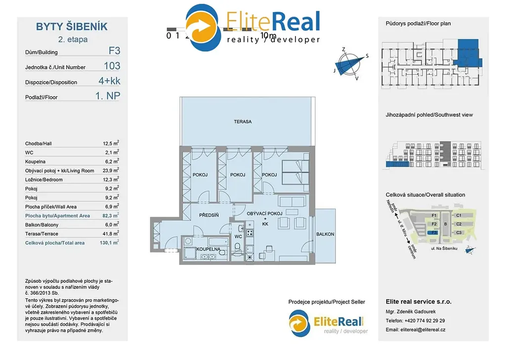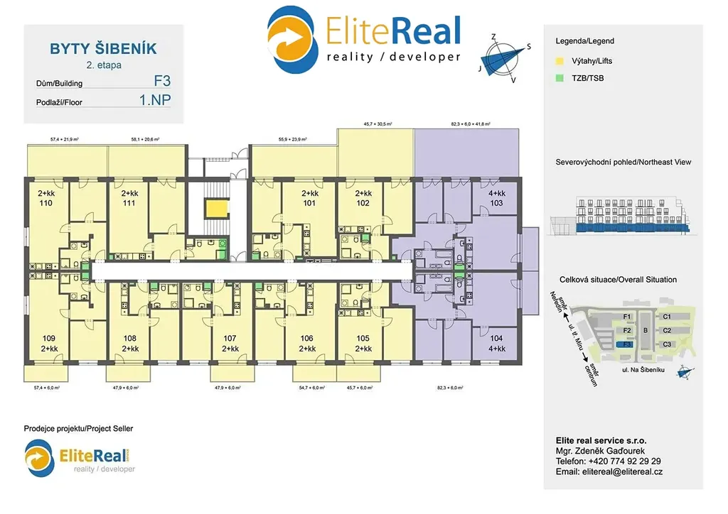 Prodáno 90% bytů. Elite real service s.r.o., prodejce projektu, Vám nabízí prodej nové bytové jednotky přímo v centru města Olomouce v developerském projektu Nový Šibeník 2.etapa (předpokládaný termín dokončení 12/2025). Bytová výstavba je situována v exkluzivní lokalitě přímo v centru města v blízkosti ulice Na Šibeníku v městské části Nová Ulice, Olomouc. Bytová jednotka F3.103 4+kk je orientována na jihozápad. Plocha jednotky 79,90 m2 + plocha terasy na terénu 42,3 m2 + plocha terasy nad terénem 5,8 m2. Zajistíme Vám bezplatně financování nemovitosti. Nabízíme klientům služby vlastního hypotečního centra s výhodami, které jsme pro Vás s bankovními ústavy připravily. Kupte si nové nízkonákladové bydlení - bytový dům je zařazen do energetické třídy B. Půdorys bytové jednotky, který zde prezentujeme, je základní. Dispozici nové jednotky a design si můžete upravit dle vlastních požadavků. Jednotky je možné slučovat i rozdělovat dle fáze výstavby. Nechte si postavit nový byt dle vašich představ. K novému bytu je možno dokoupit sklep nebo vnitřní parkovací stání. Standardní vybavení bytů splňuje požadavky moderního bydlení (keramická podlaha, obložkové zárubně, moderní keramické obklady, francouzské okna, atd.). Klientům nabízíme možnost kompletního návrhu a řešení interiéru. Výjimečná investiční příležitost koupě nového bytu přímo v centru města u tramvajové zastávky s docházkovou vzdáleností 7 minut pěšky do historického centra. Pro investory zajišťujeme bezplatně následný pronájem, případně i správu nemovitosti. Doporučujeme osobní jednání a prohlídku výstavby - volejte makléře. Bližší informace k bytovému projektu a největší nabídku novostaveb - nových bytů, bytů na prodej, bytů k pronájmu - naleznete na našich webových stránkách.