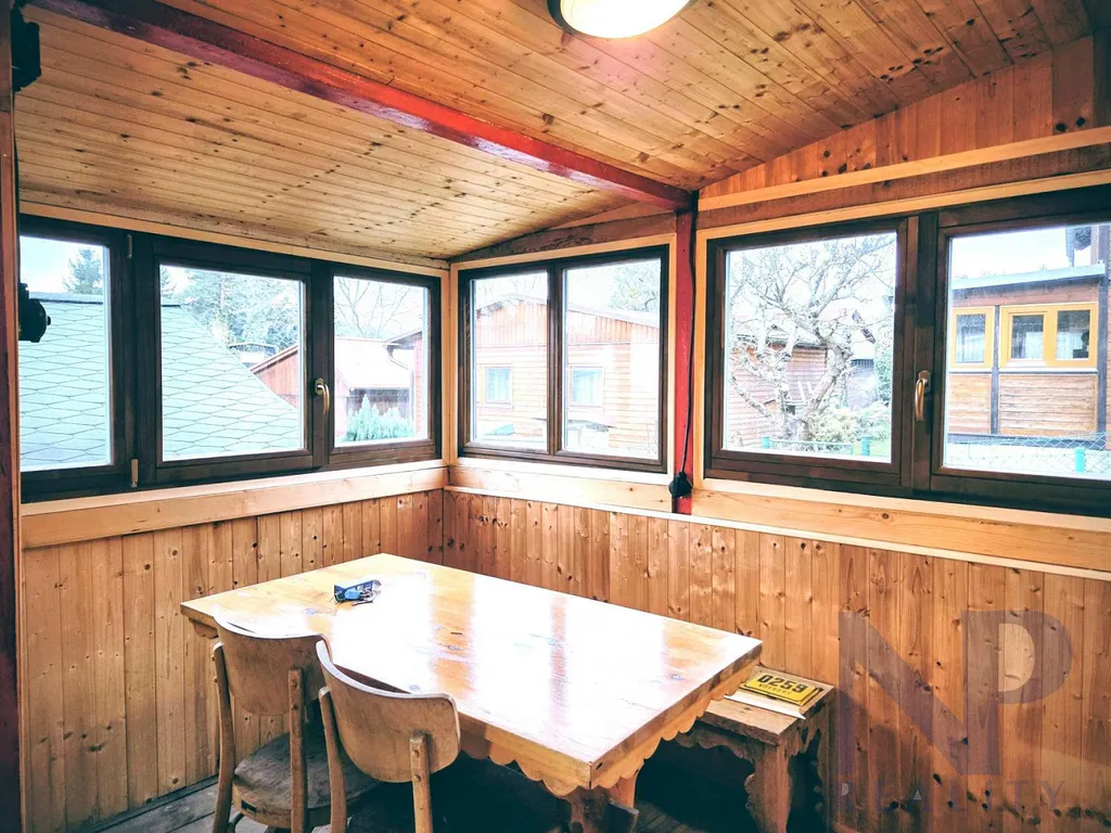 Nabízíme Vám chatu v malebném údolí řeky Berounky v oblíbené chatové osadě Montana ve Všenorech. Chata o výměře 31 m² je po kompletní rekonstrukci a je umístěna na pronajatém pozemku o výměře 99 m². Chata se sestává z obývacího pokoje o výměře 10,8 m², ložnice 6,5 m², jídelny 5,2 m² a koupelny s wc. Chata má nové dřevěné obložení, nová dřevěná okna a dveře, novou plechovou střechu, nové okapy, nové dřevěné podlahy a wc. Zbývá zapojit el. bojler na ohřev vody a dokončit koupelnu. Vytápění zajišťují kamna. Dřevník se nachází v malém prostoru pod podlažím. Odpadová voda je odváděna do jímky na pozemku. Voda z vrtu na pozemku je užitková. Do chaty je přivedena el. energie. K dispozici je 1 vyhrazené parkovací místo u příjezdové cesty ve vzdálenosti 60 m od chaty. Umístění chaty v výše v mírném svahu zajišťuje chatu od rizika povodní. Nájemné za pronájem pozemku činí 990 Kč ročně. Údolí řeky Berounky nabízí víceúčelovou rekreaci jak na vodě, při vodáckých sportech, či rybolovu, nebo vyjížďkami na kole, po okolních cyklostezkách, či pěšími vycházkami do okolních lesů, či kolem řeky po jejím malebném břehu. Budu se těšit na prohlídce.