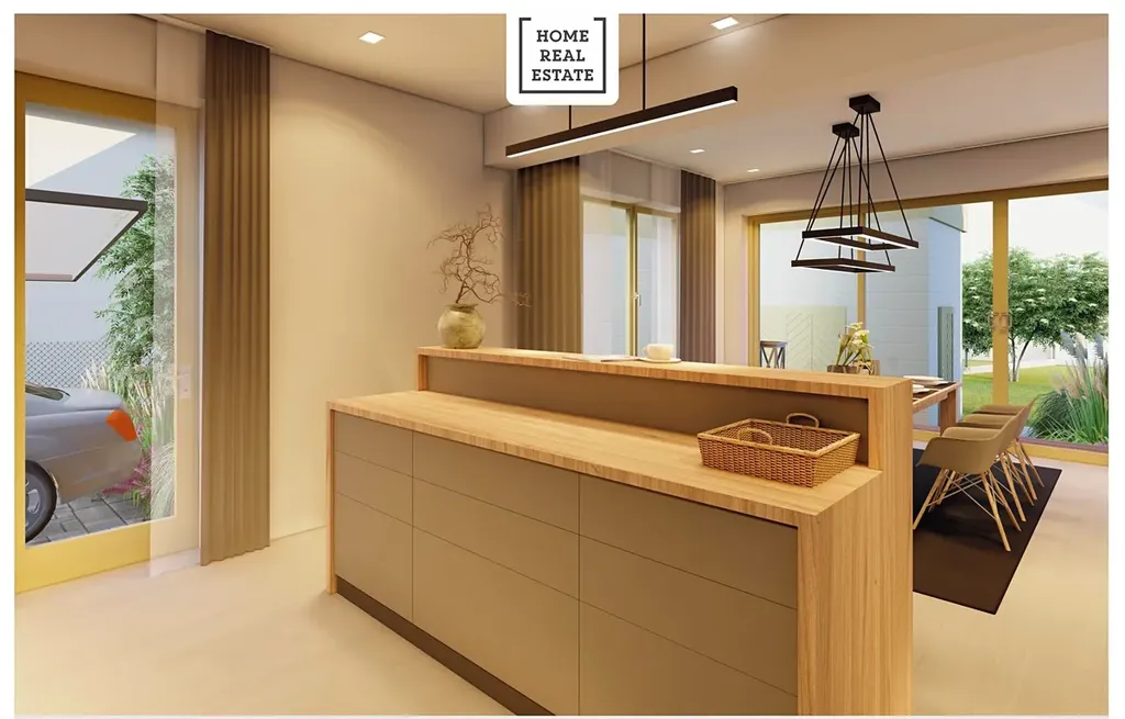 - obývacím pokojem s kuchyňským koutem, barovým ostrůvkem a místem na posezení
