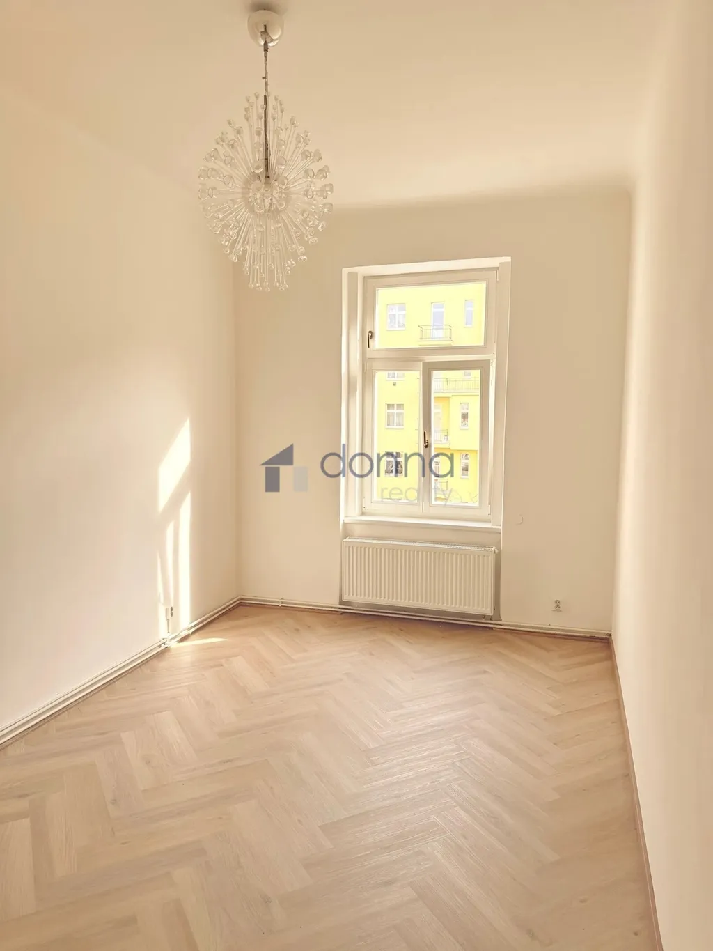 Byt je situován do vnitrobloku, je bez nábytku, k dispozici kuchyňská linka se spotřebiči.