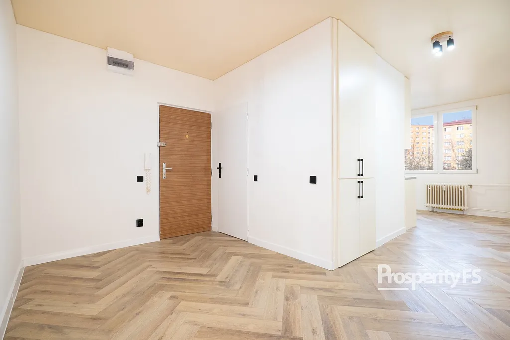 Byt je po rekonstrukci – má nové rozvody elektřiny a vinilové podlahy. K dispozici je kuchyňská linka se spotřebiči (indukční varná deska, horkovzdušná trouba, lednička, mrazák a myčka) a vestavěná pračka v chodbě. Koupelna se sprchovým koutem a toaletou, s místem pro umyvadlo.