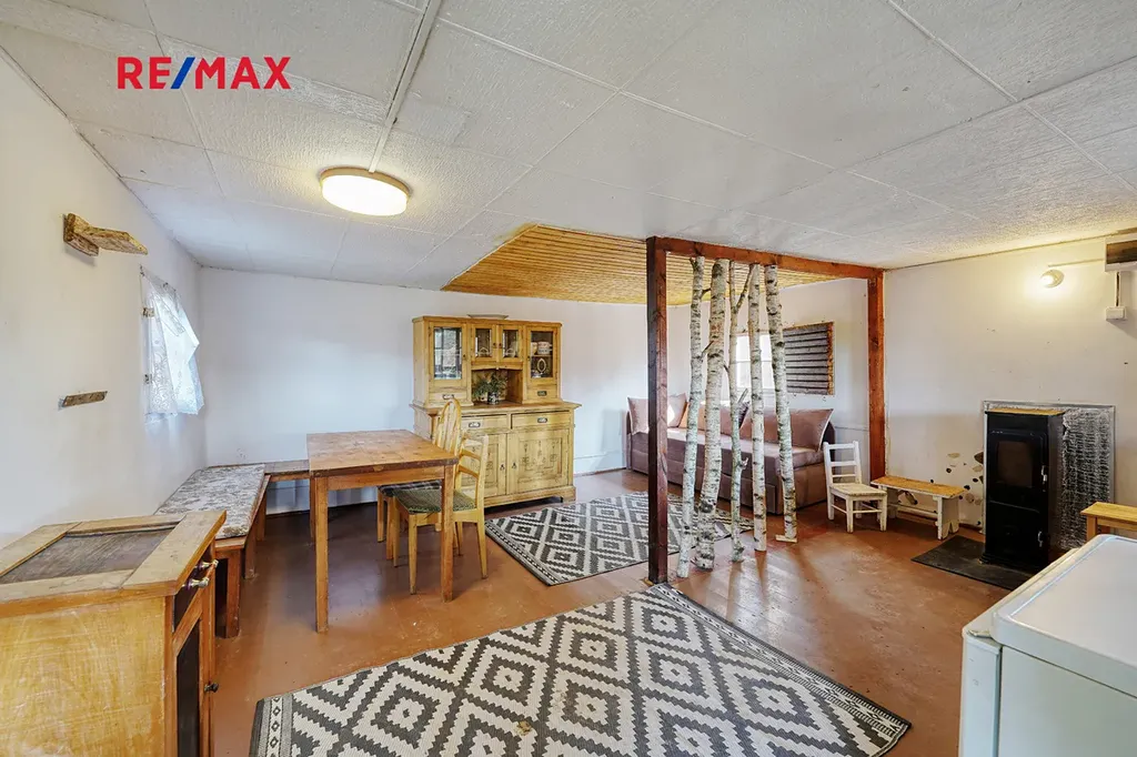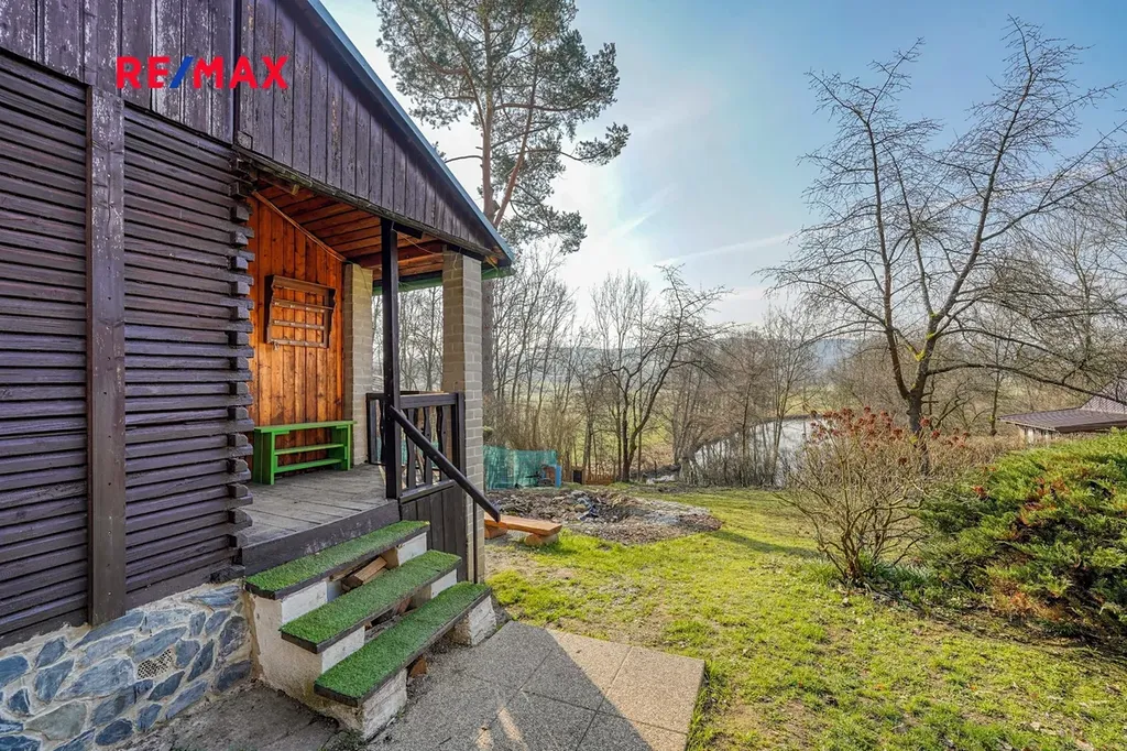 Chata disponuje užitnou plochou o 32 m² a nachází se na pozemku o výměře 264 m². Nemovitost je umístěna v klidné a vyhledávané lokalitě obklopené přírodou, s přímým přístupem k vodě, což zajišťuje ideální podmínky pro relaxaci, rybaření, houbaření nebo sportovní vyžití v přilehlém okolí. Chata je rozdělena na vstupní chodbu, pokoj a obývací pokoj s jídelním stolem. Dále zde nalezneme i sklep a suchý WC. Vytápění je řešeno pomocí krbových kamen a v chatě je k dispozici také elektřina. Dominantou chaty je její přímý výhled na řeku a přilehlé okolí.