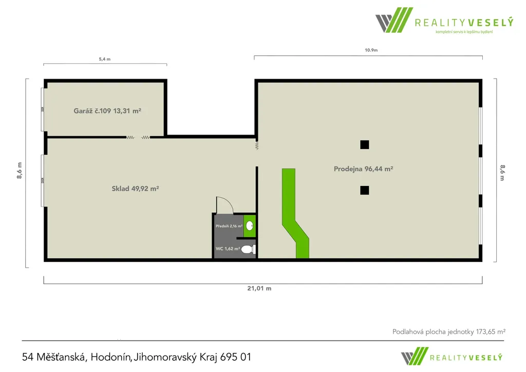 - prodejna: 96,44 m²