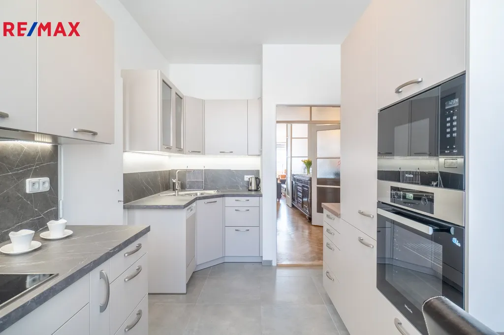 Byt nabízí flexibilní využití místností – ložnice, pracovny či dětské pokoje – a ideální kombinaci bytového komfortu a reprezentativního zázemí.
